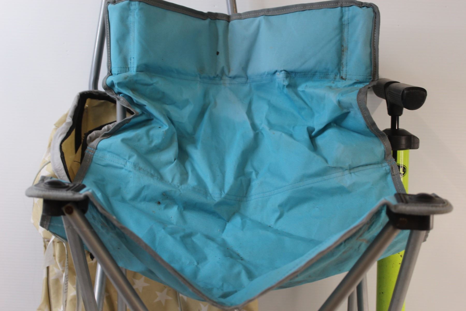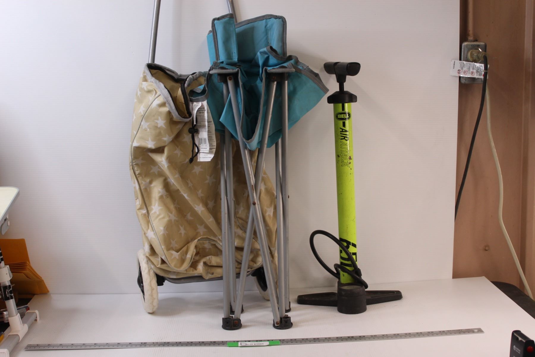 *(3) Tire Hand Pump; Folding Lawn Chair; Aluminum Framed Pull Grocery Cart