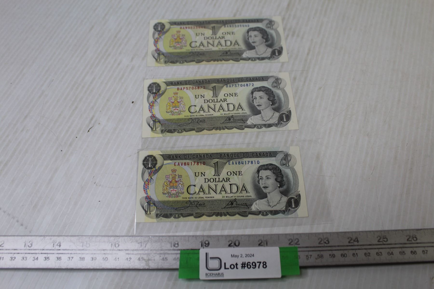 (3) Uncirculated 1973 Canadian One Dollar Bills
