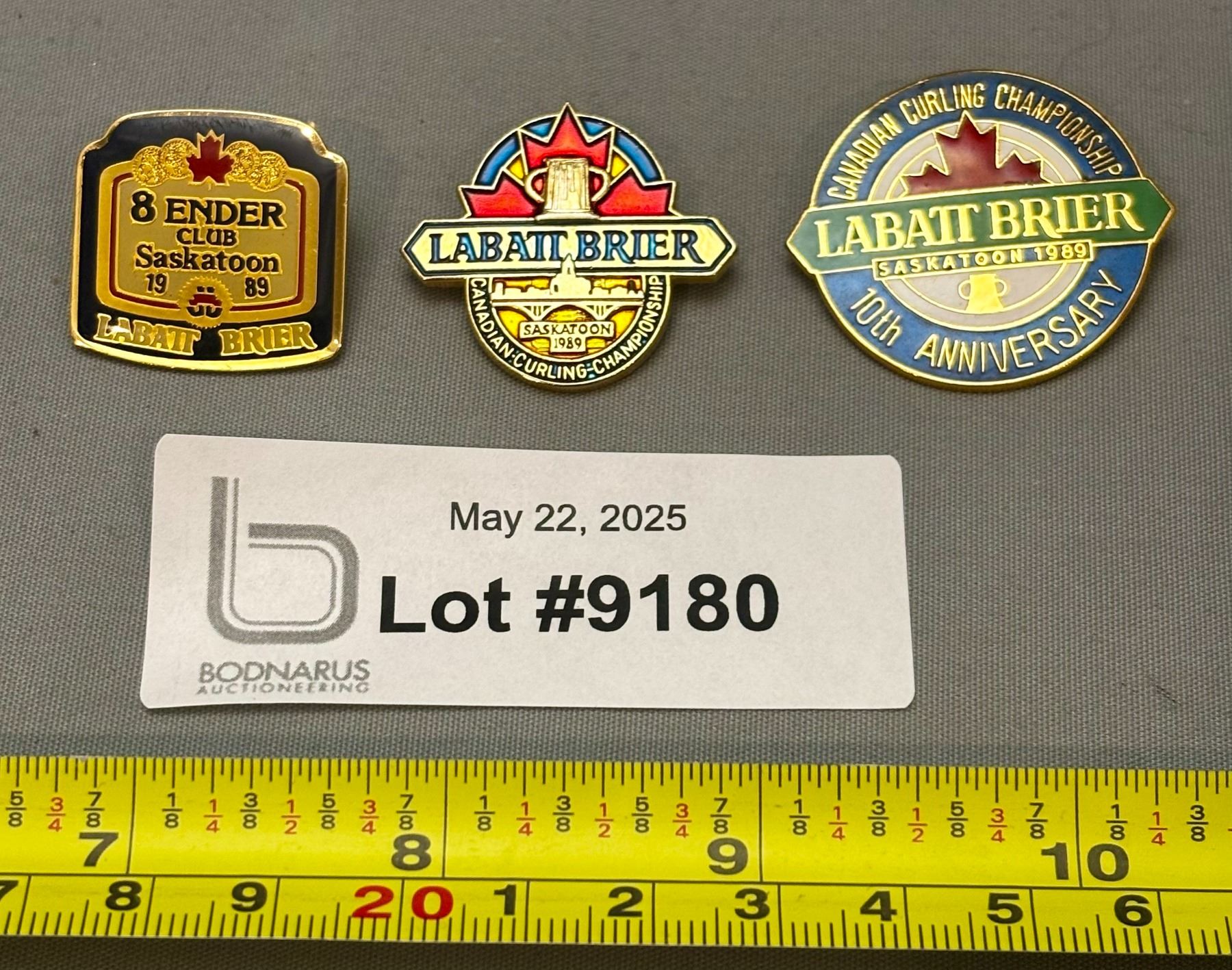 (3) Vintage 1989 Labatt Curling Collectors Pins