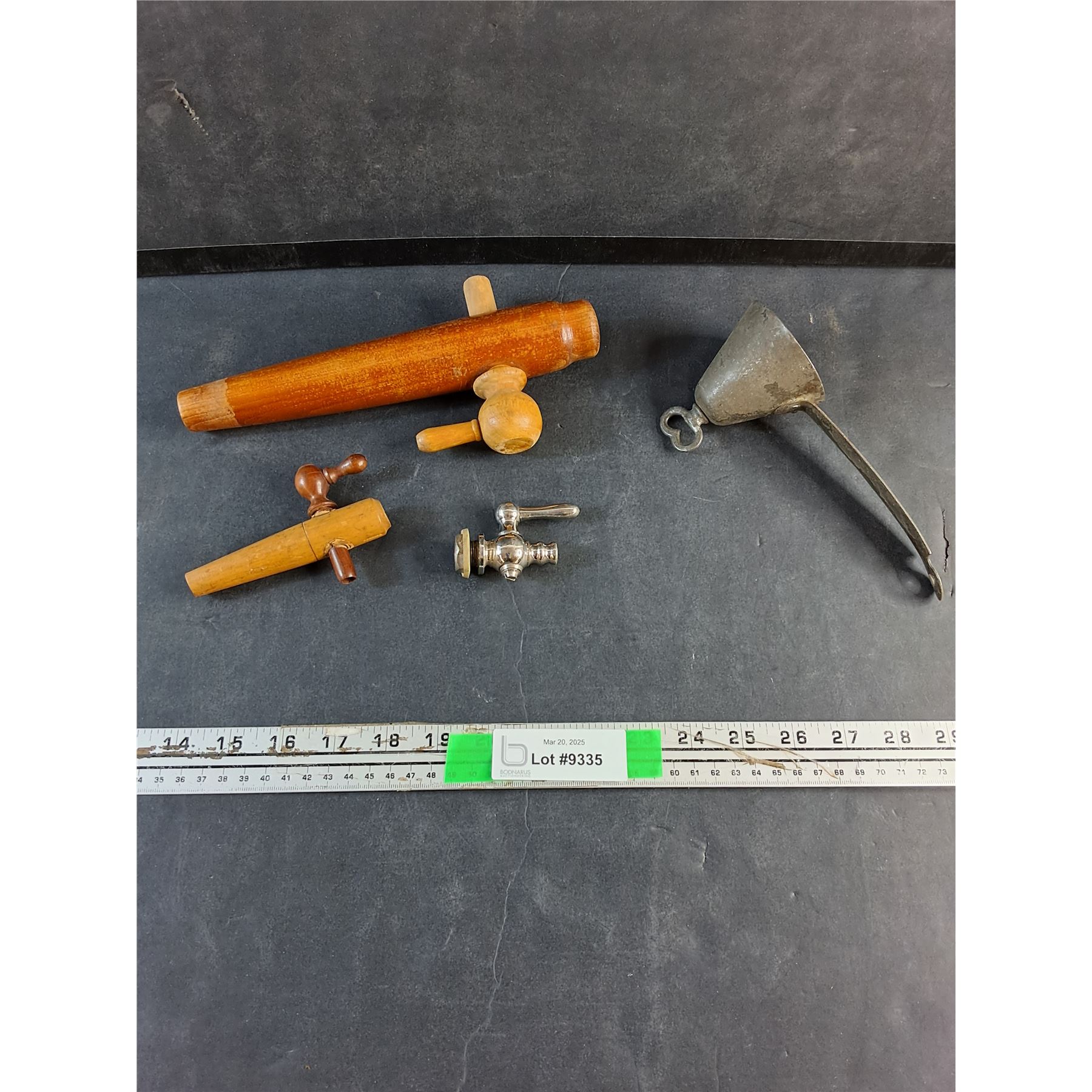 (3) Vintage Barrel Taps and Vintage Ice Cream Scoop