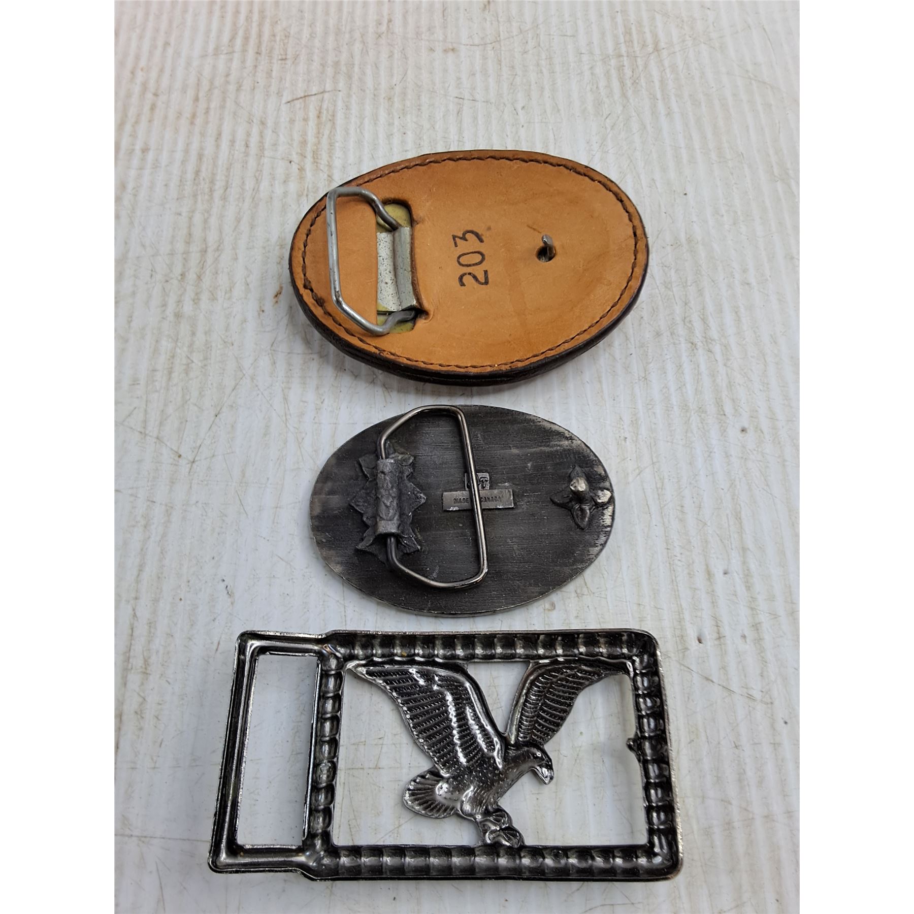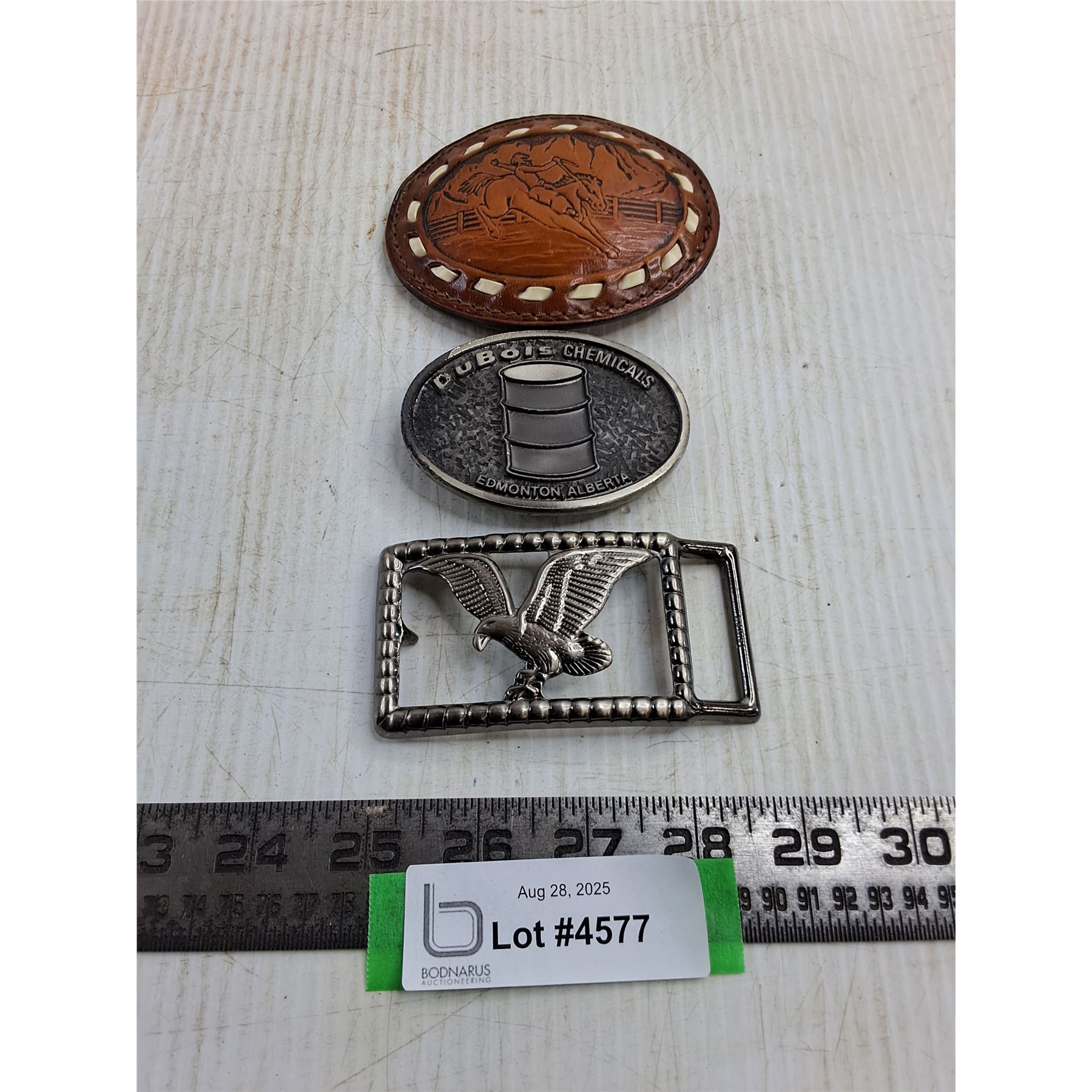 (3) Vintage Belt Buckles (Leather Rodeo, Metal Dubois Chemicals & Eagle)