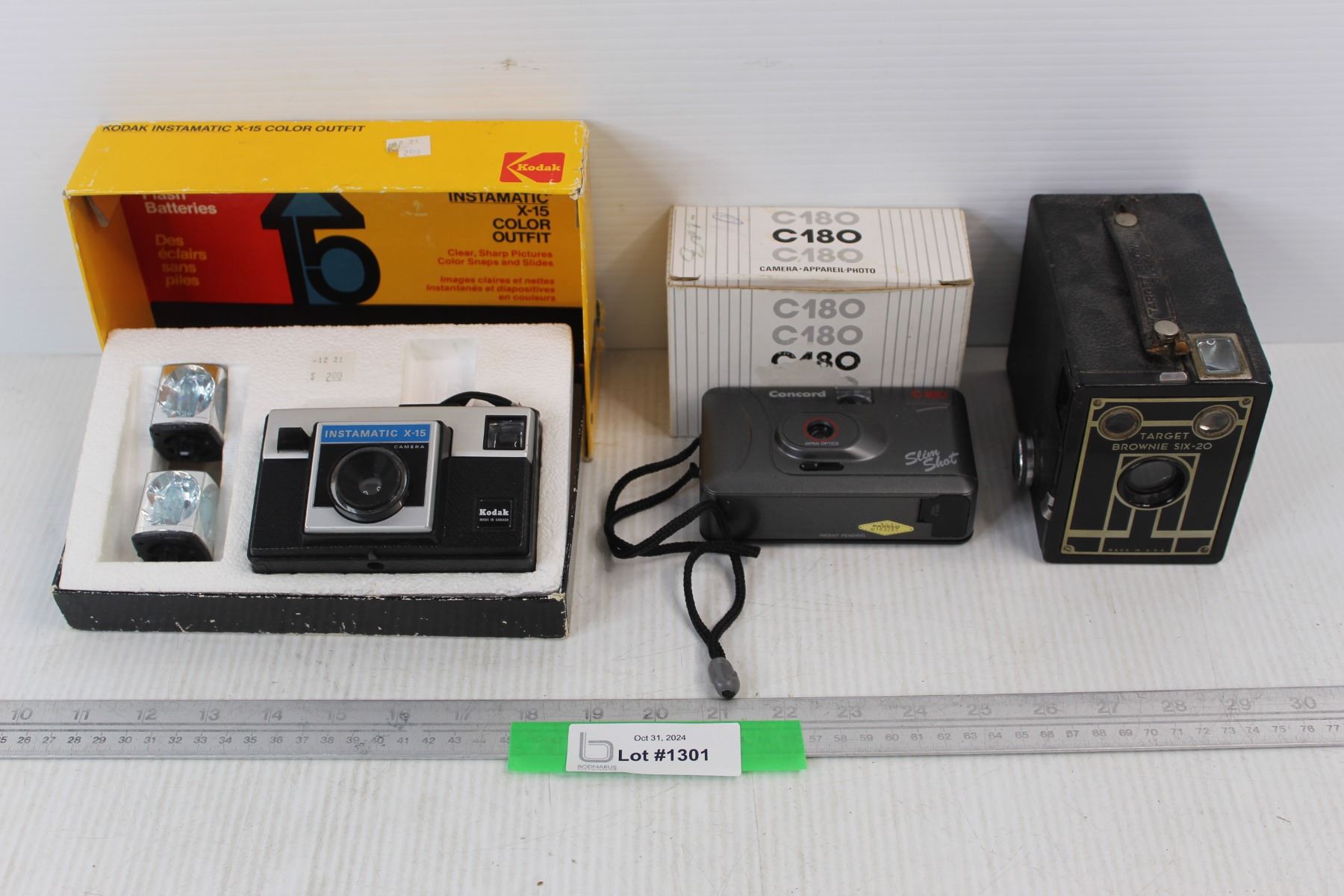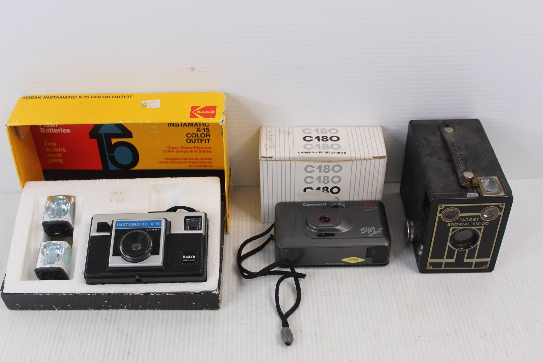 (3) Vintage Cameras, Kodak Instamatic X-15, Target Brownie Six- 20, Misc.