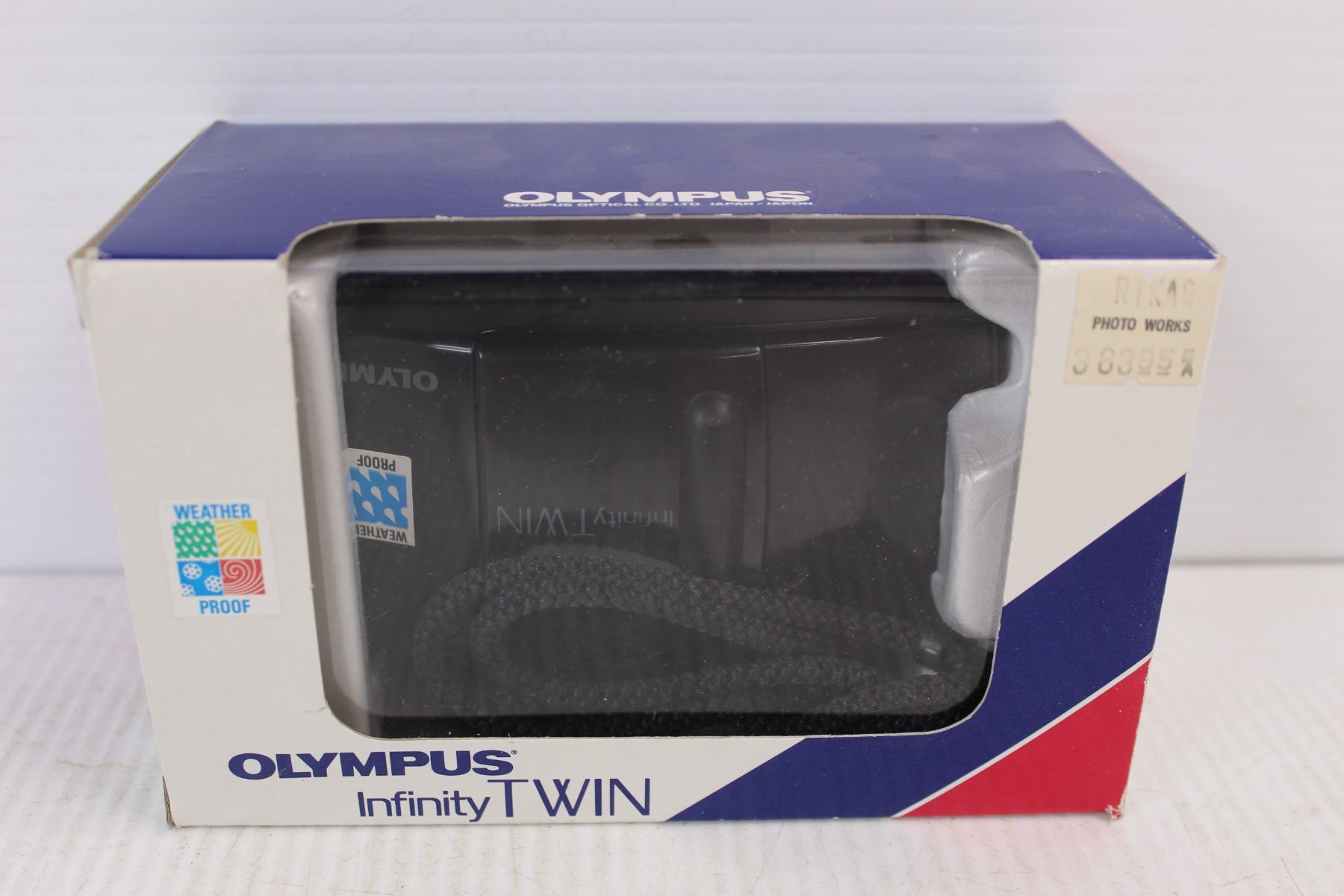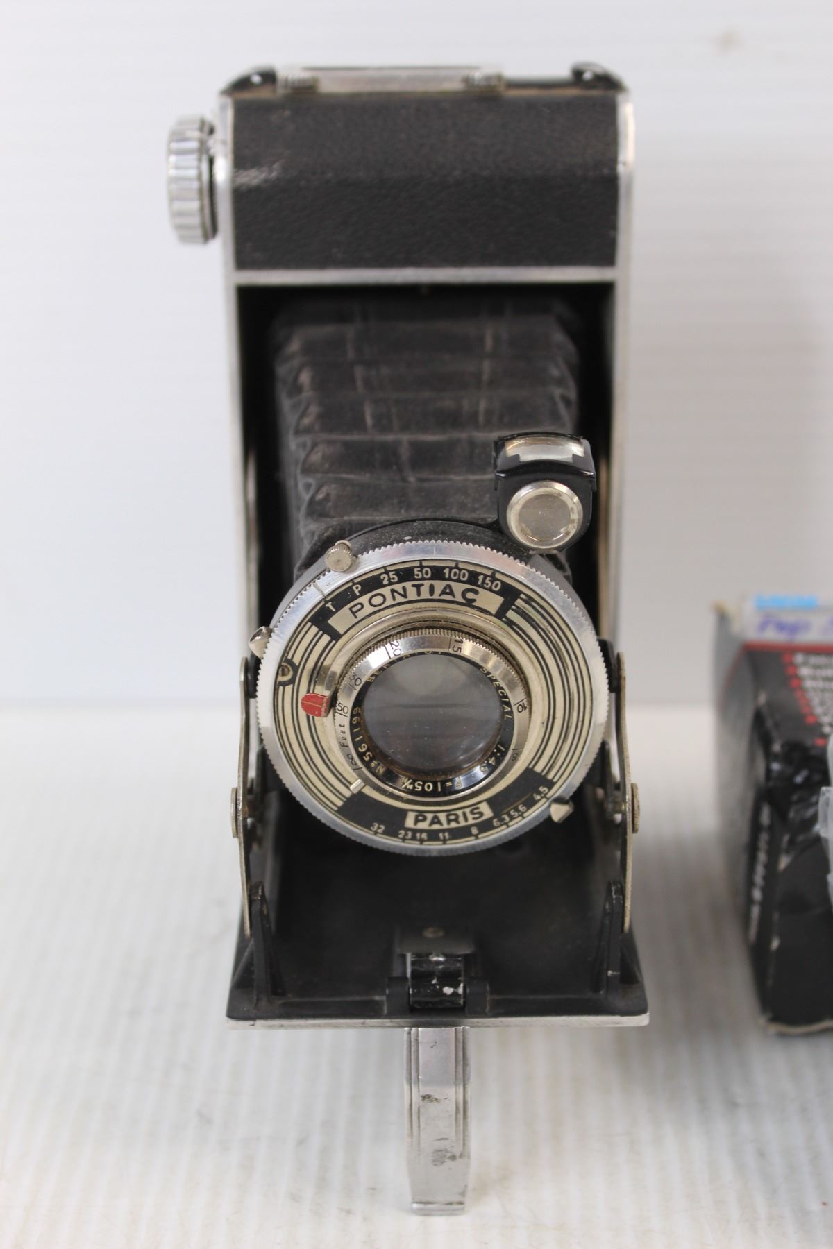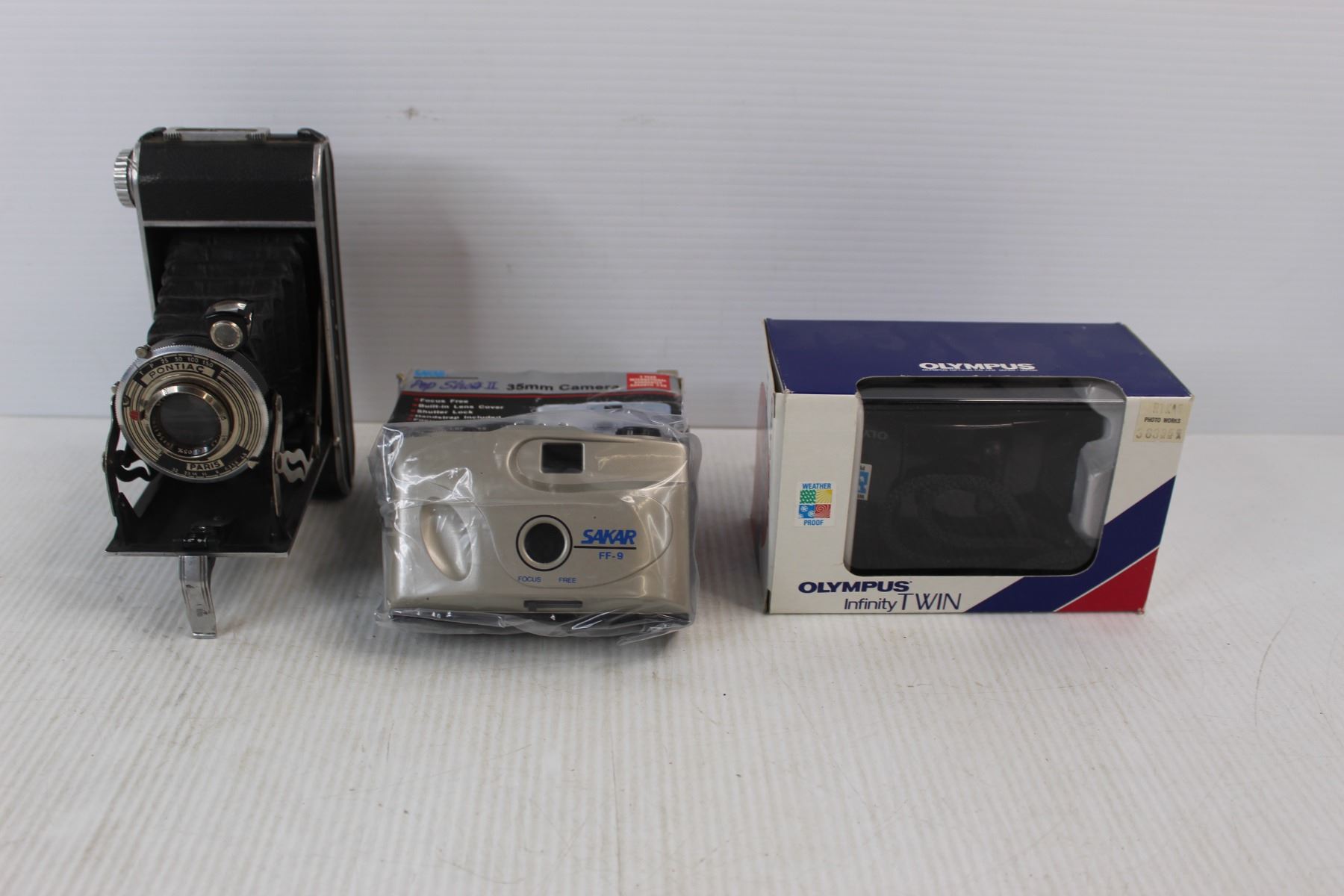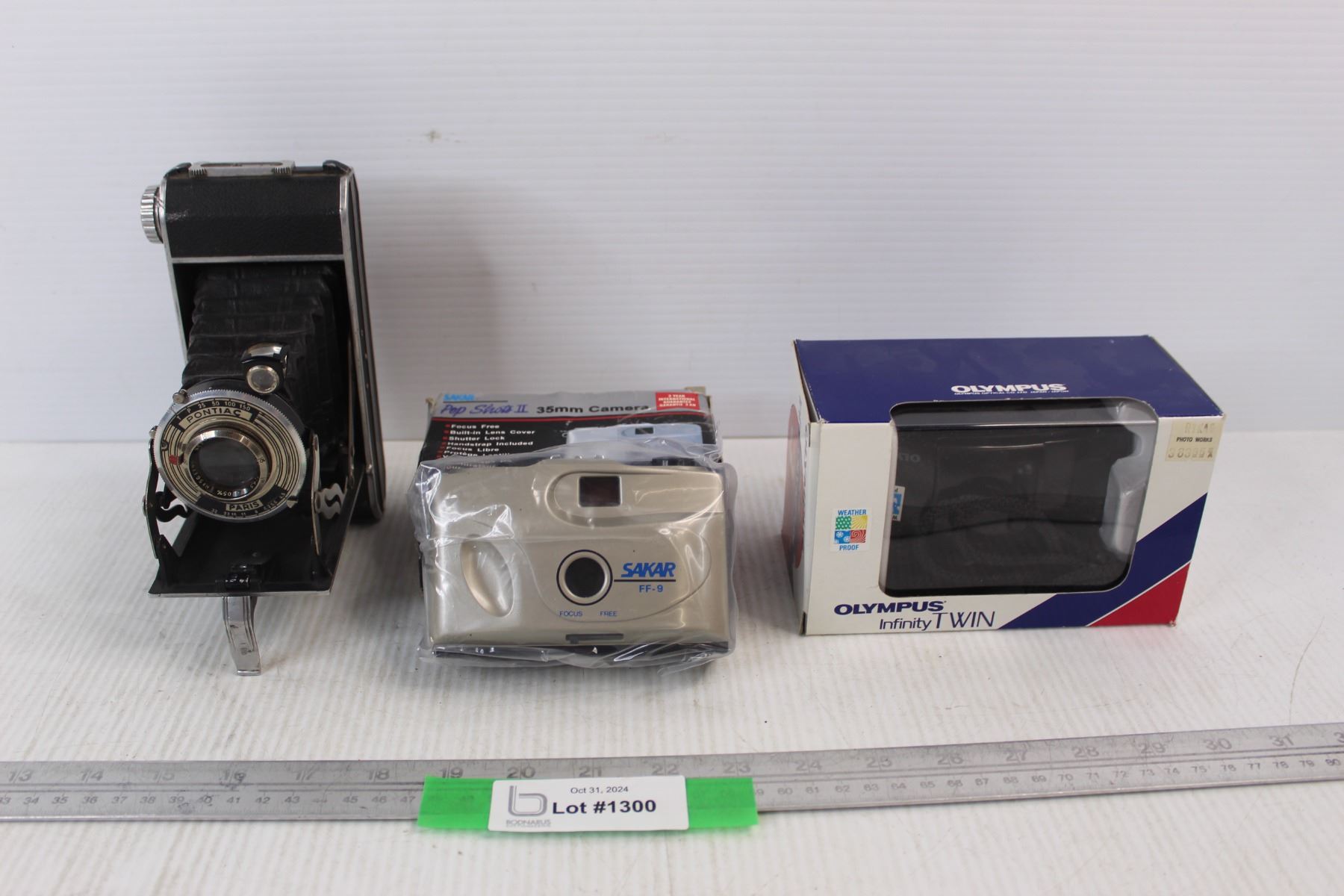 (3) Vintage Cameras, Pontiac, Olympus Infinity Twin, Sakar- (2) NIB