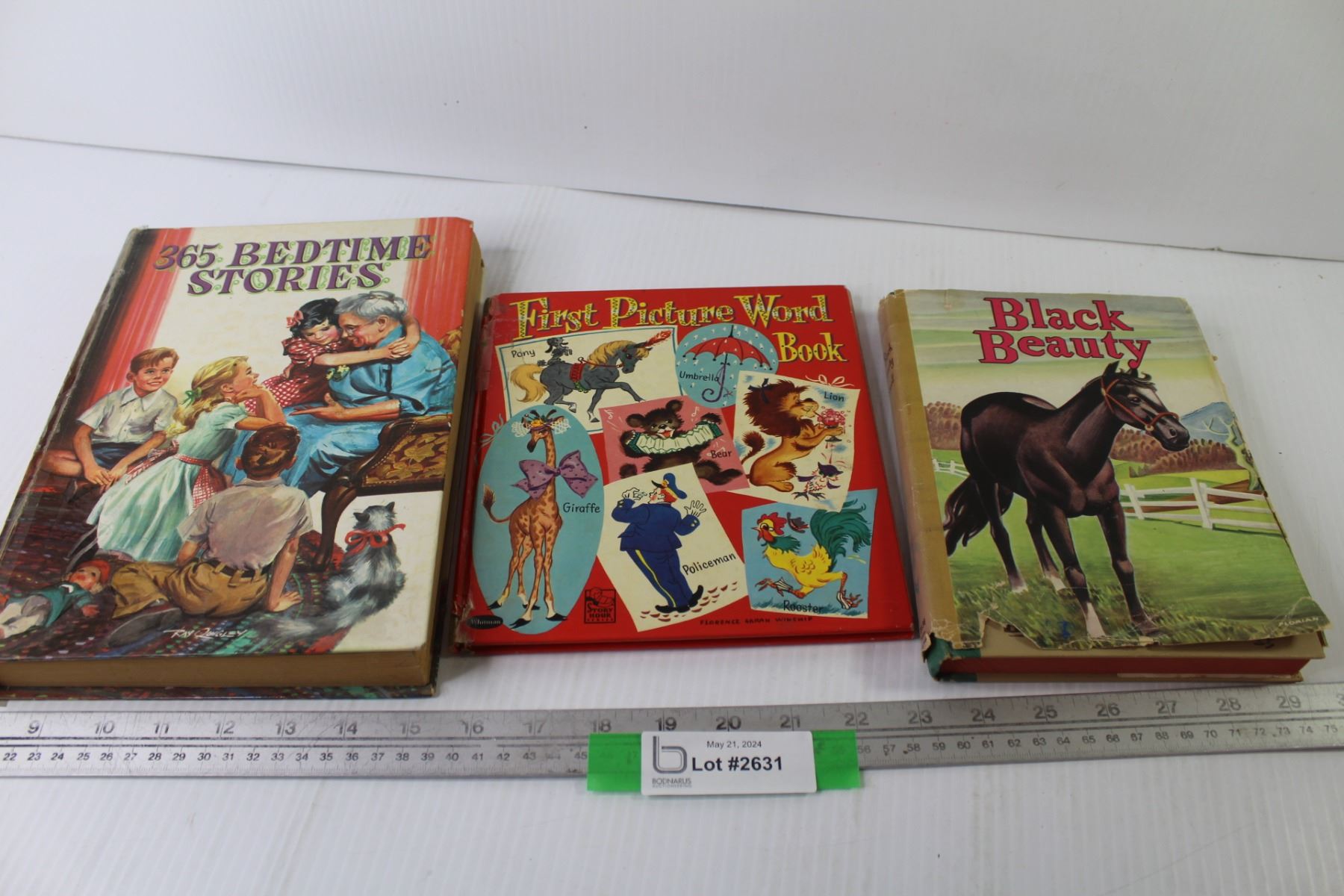 (3) Vintage Children's Books - Black Beauty - 365 Bedtime Stories - The First Picture Words Book