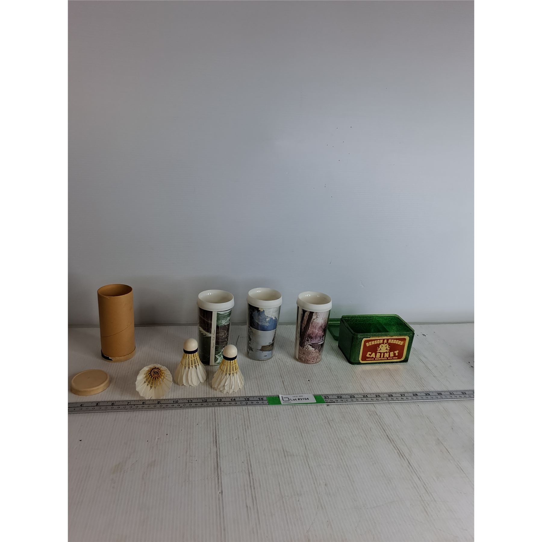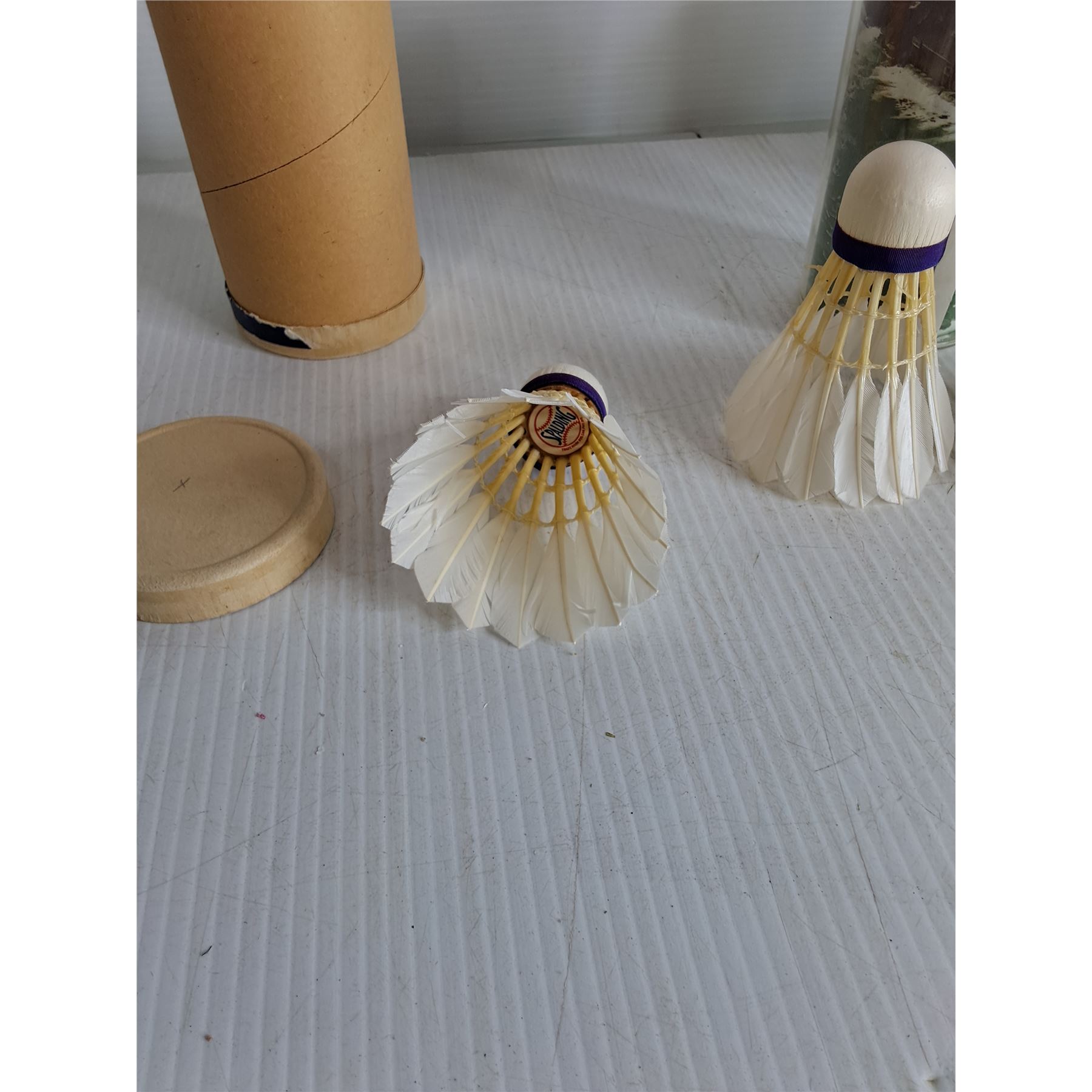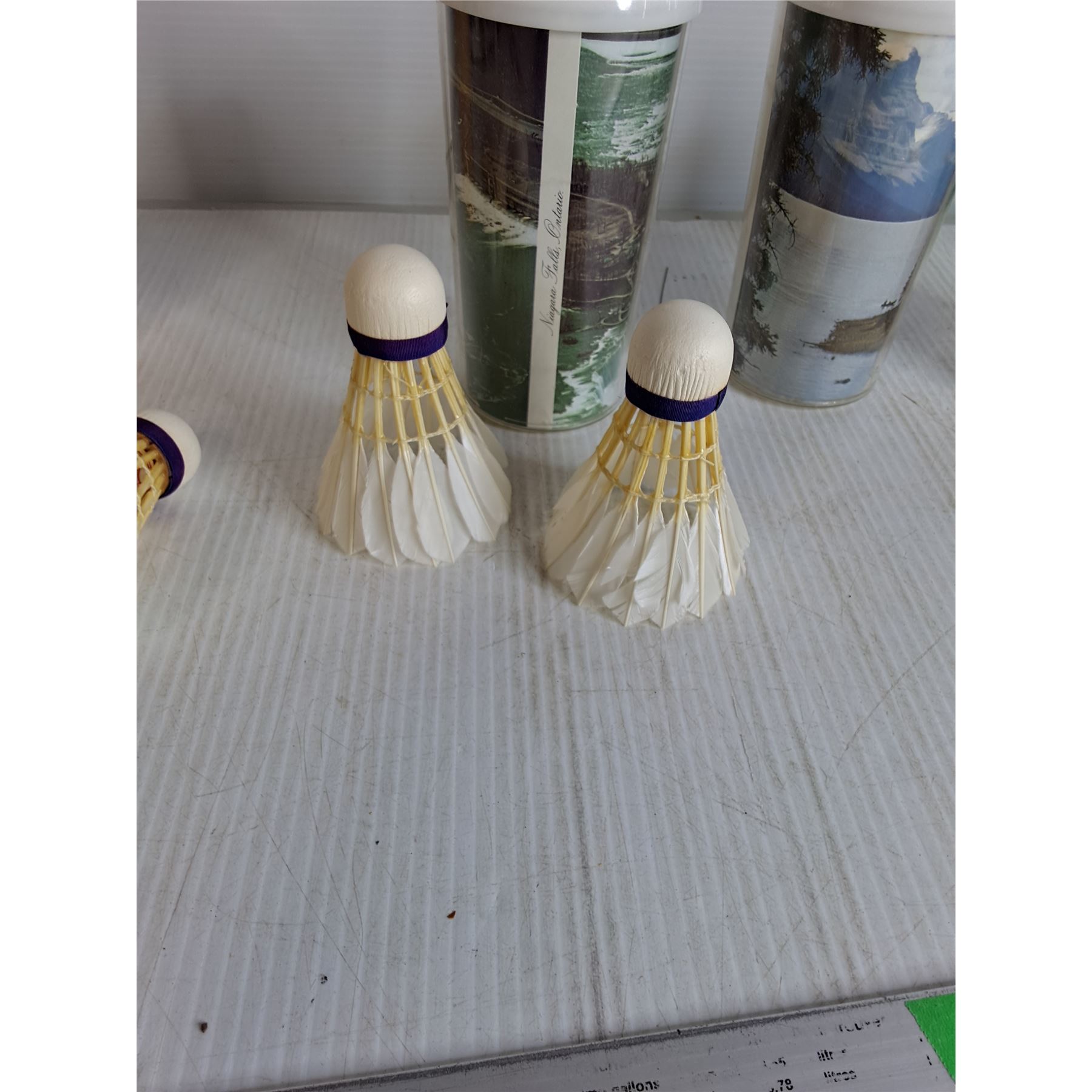 (3) Vintage Feather Shuttlecock Spalding Birdies, (3) Plastic Cups, Misc