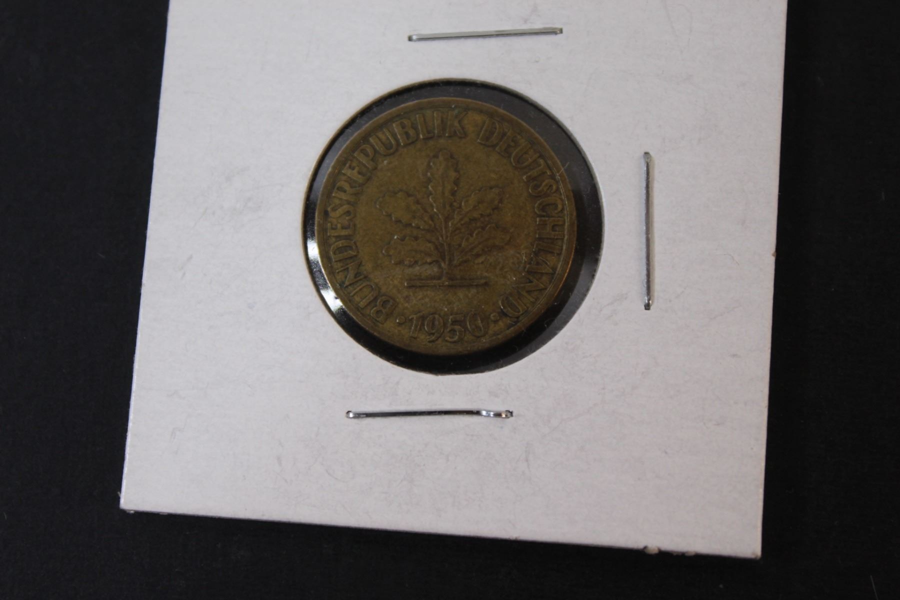 (3) Vintage German Coins: Nazi 10 Pfennig 1937; 10 Pfennig 1950; 1 Mark 1950