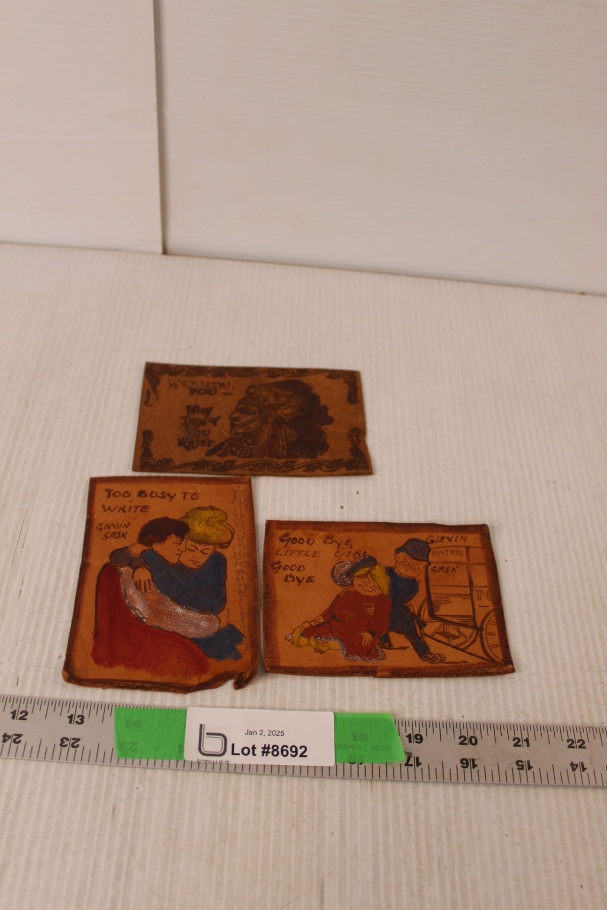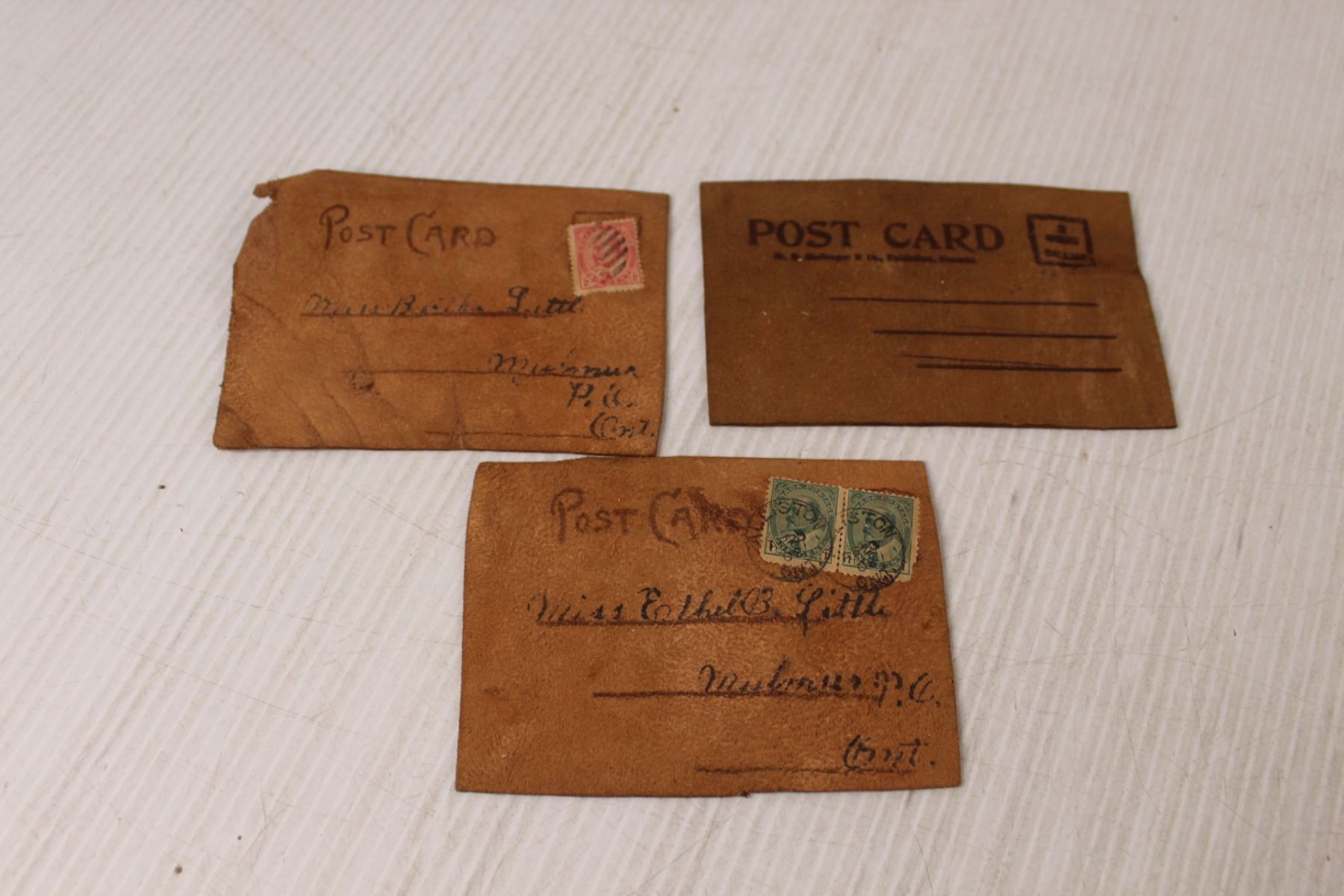 (3) Vintage Leather Postcards