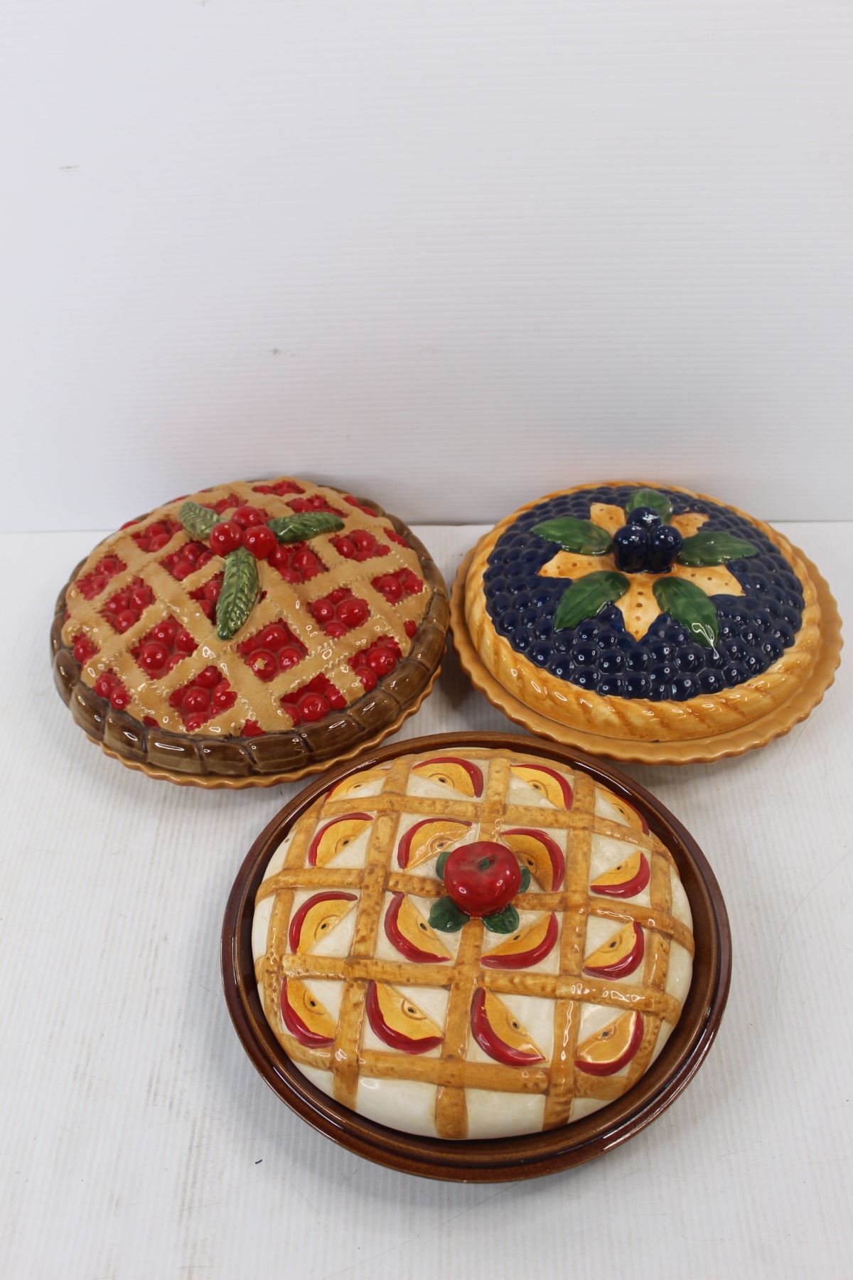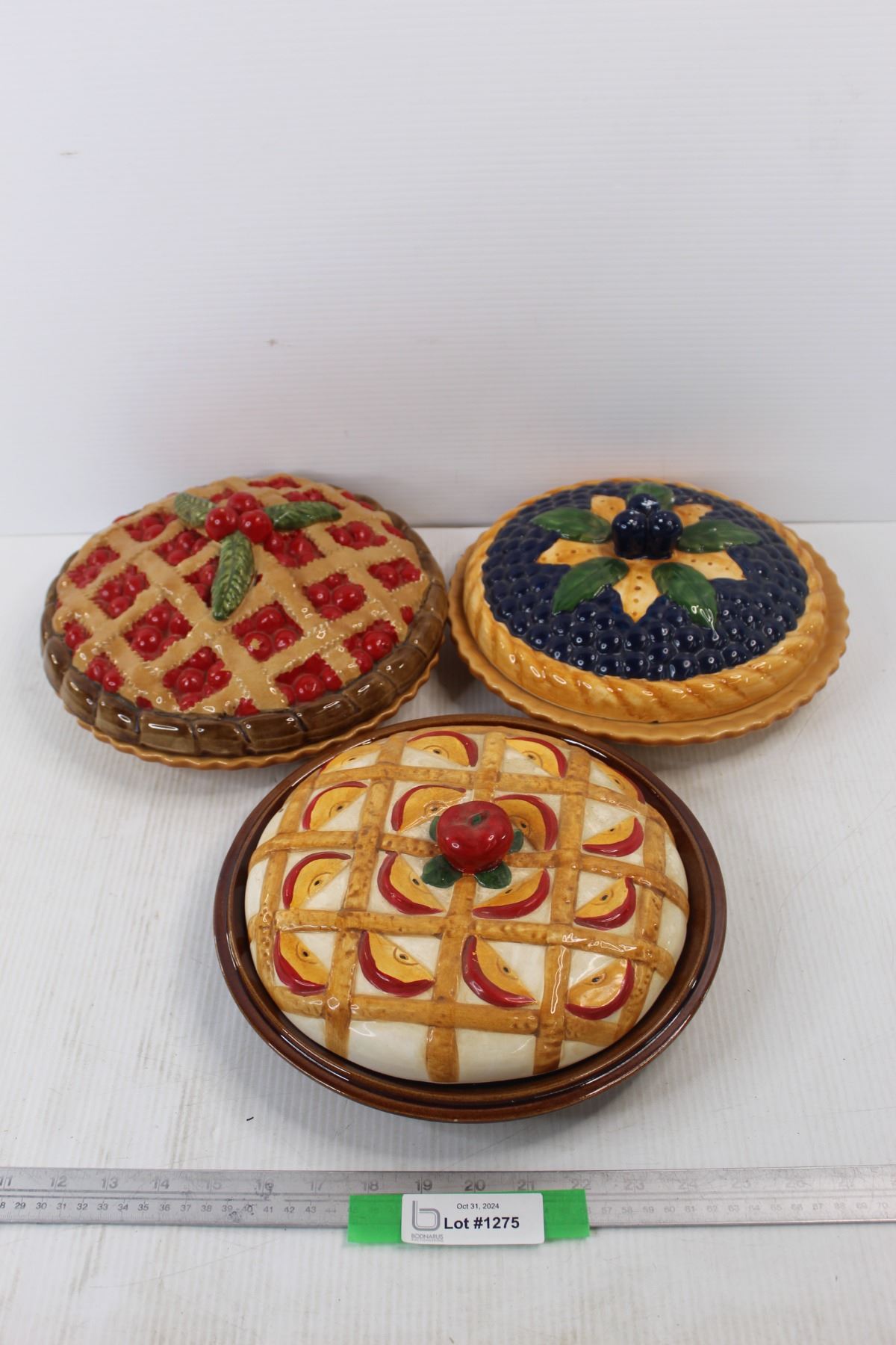 (3) Vintage Pie Like Decor Dishes w/ Lids, Over And Back, made In China