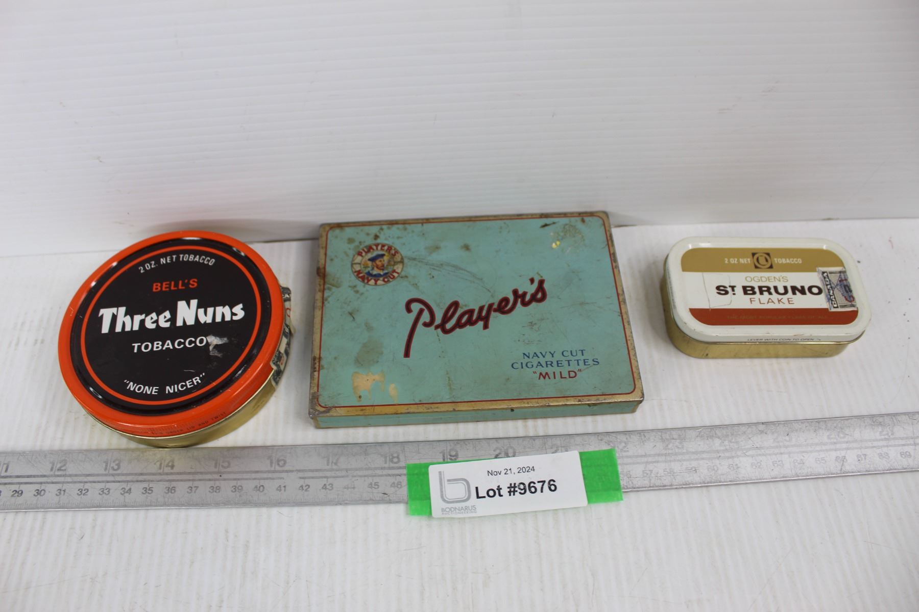 (3) Vintage Tabacco/ Cigarette Tins, Players, St. Bruno, Bells Three Nuns