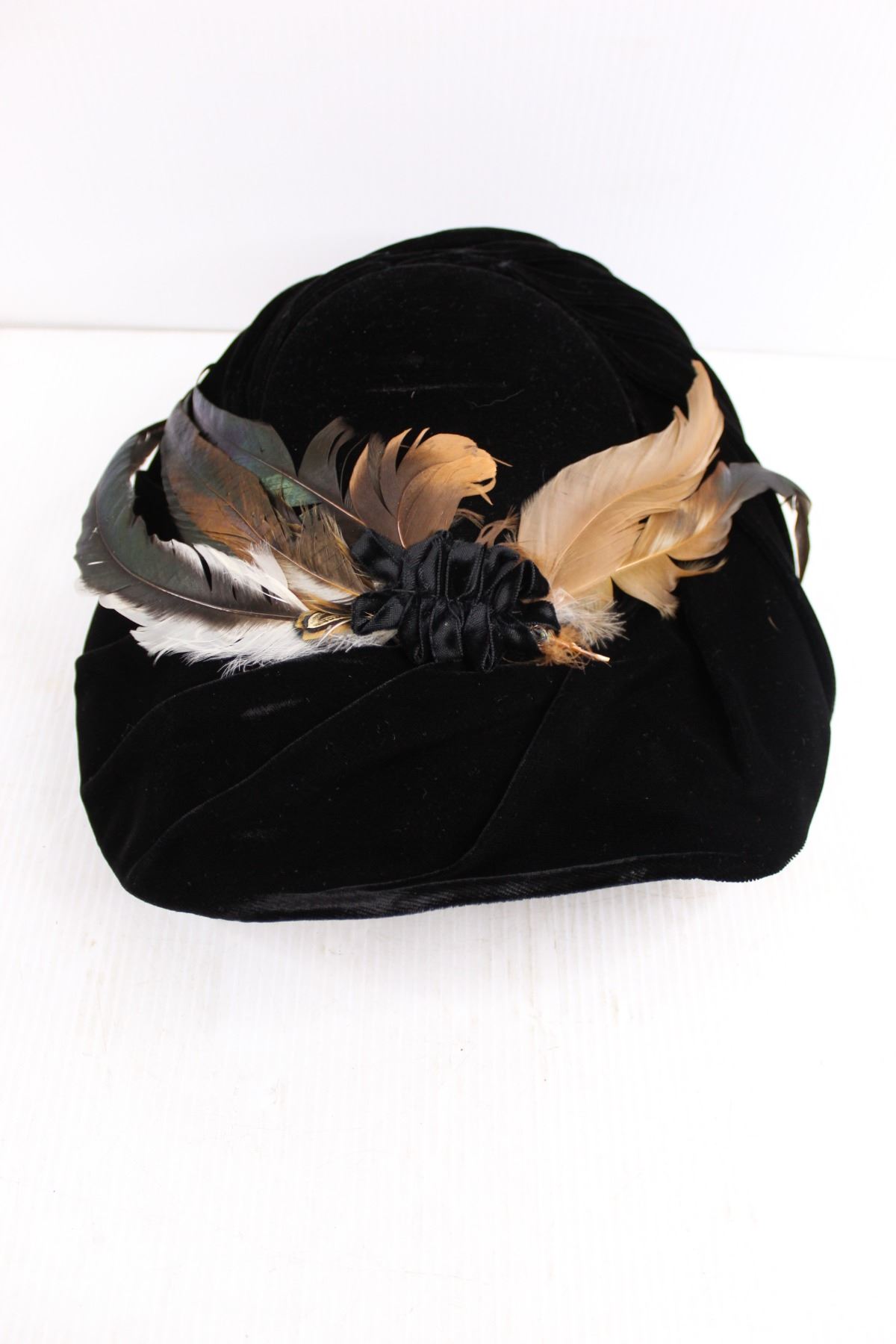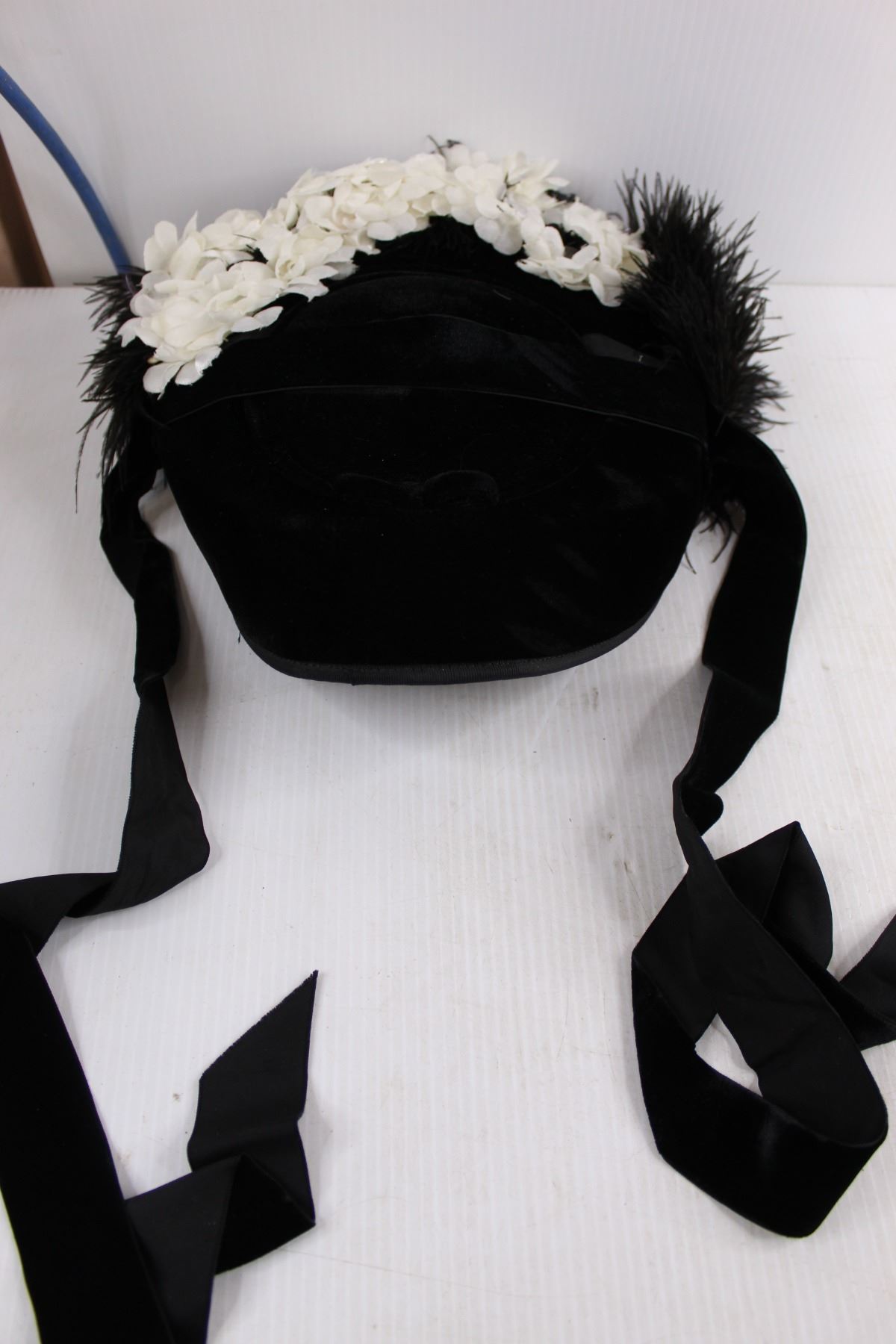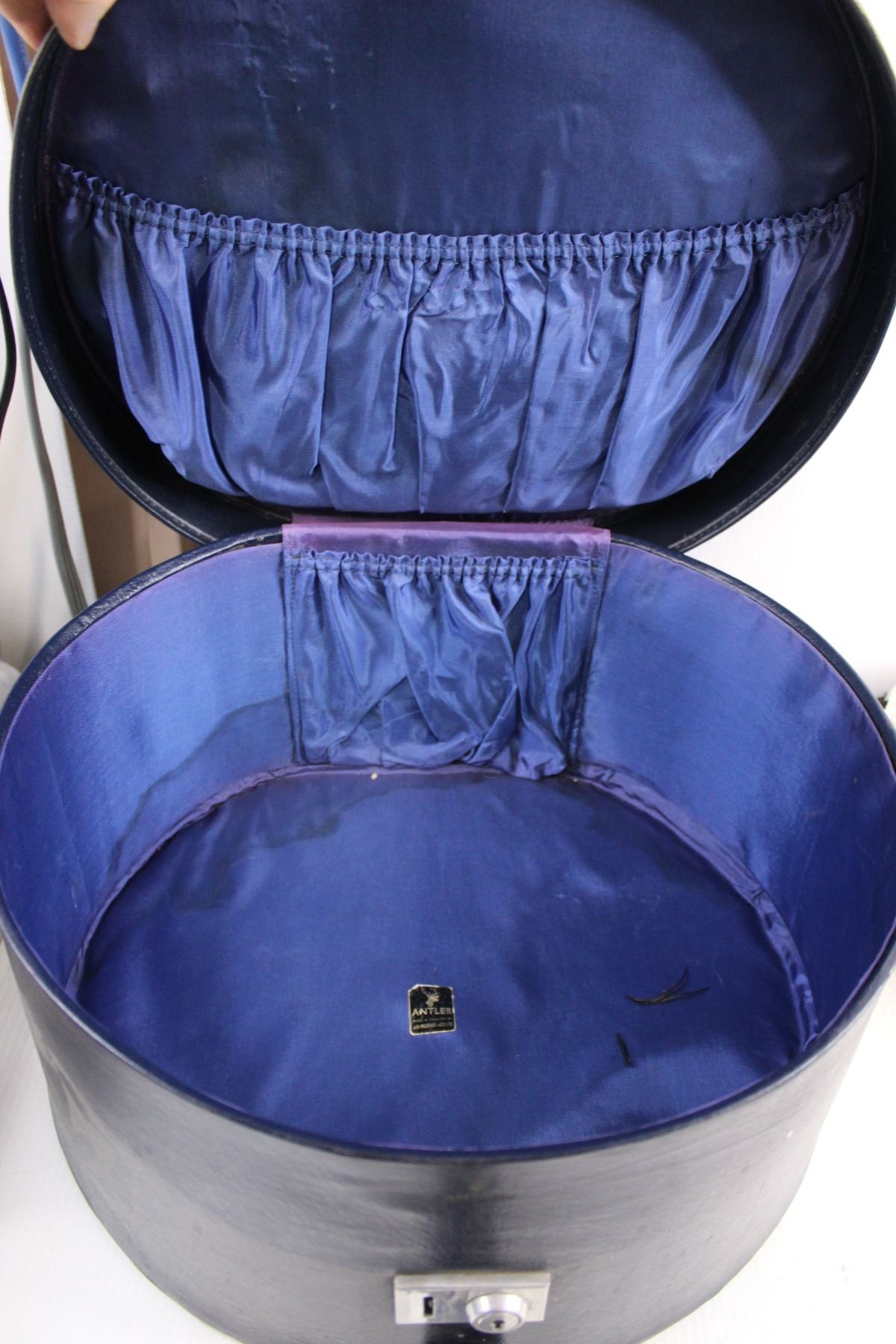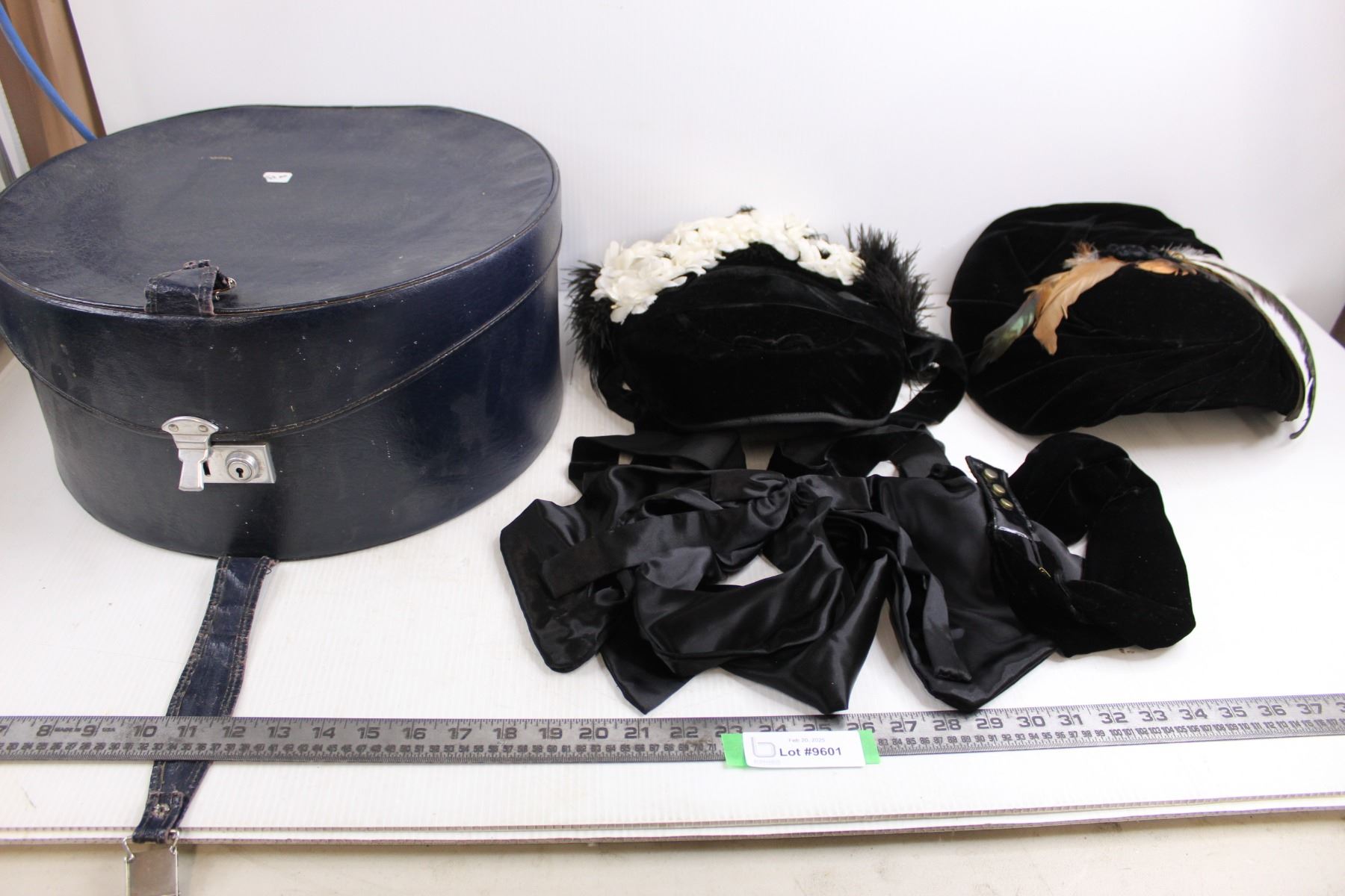 (3) Vintage Women's Headwear (2 Hats & Ribbon), Vintage Antler Round Suitcase 16" Dia x 8" High