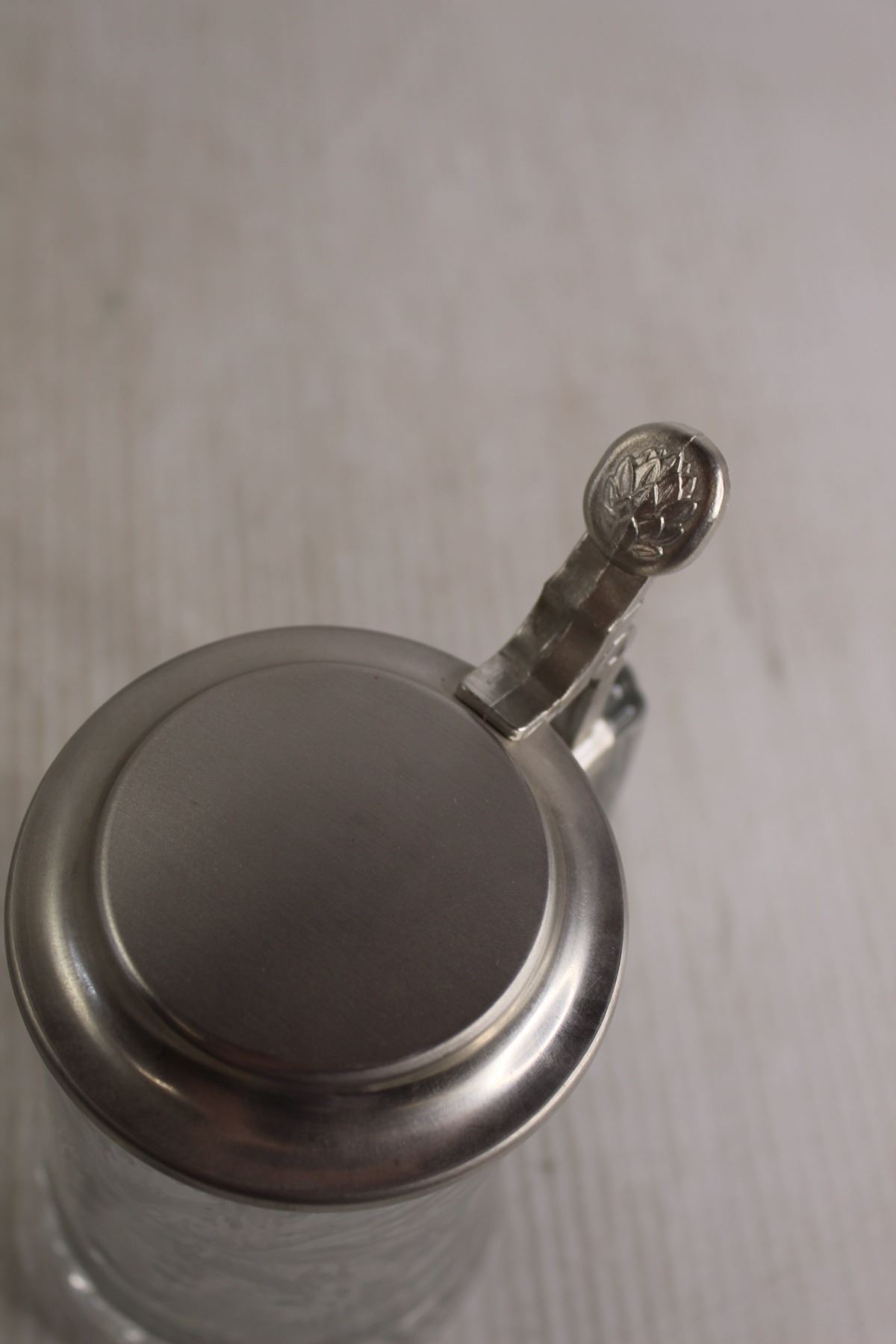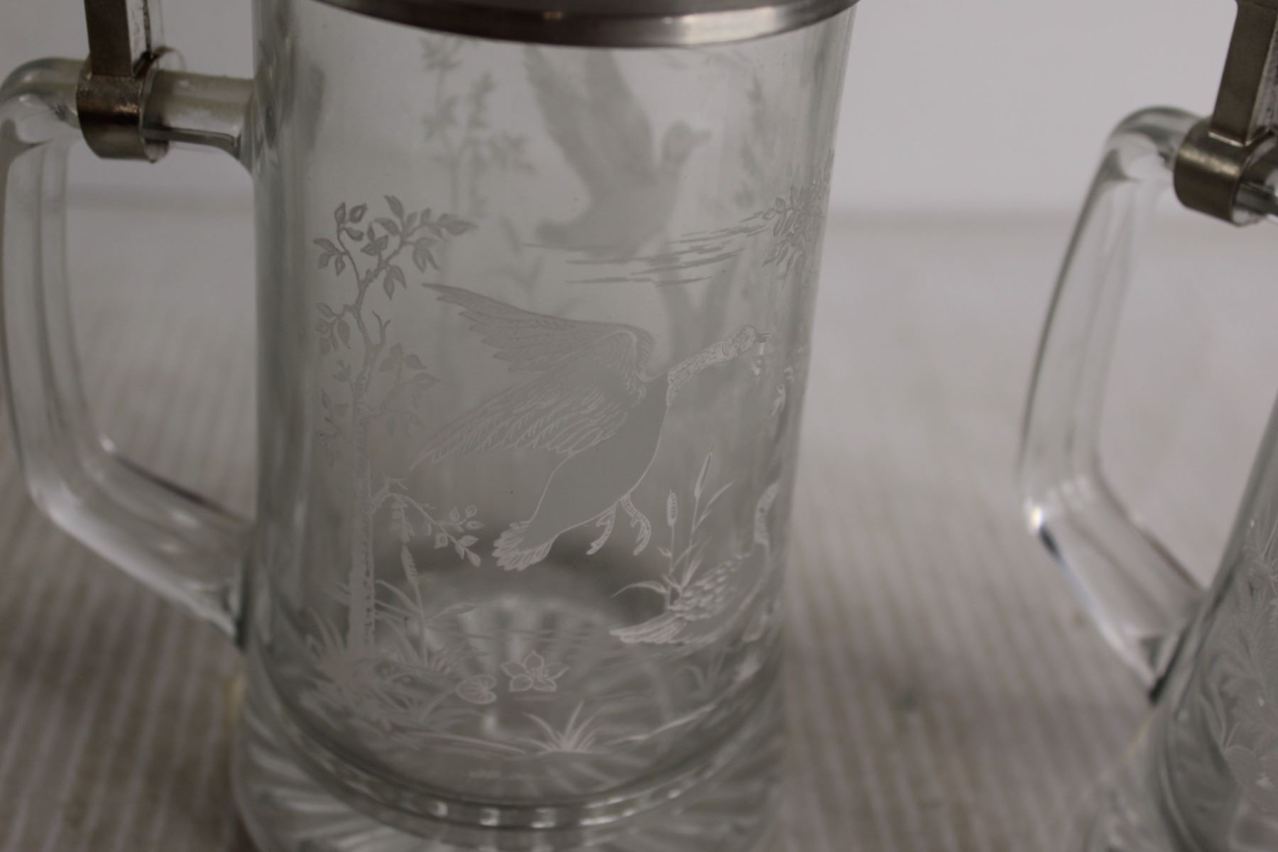 (3) Vintage ZINN Beer Steins with Etched Glass - Germany