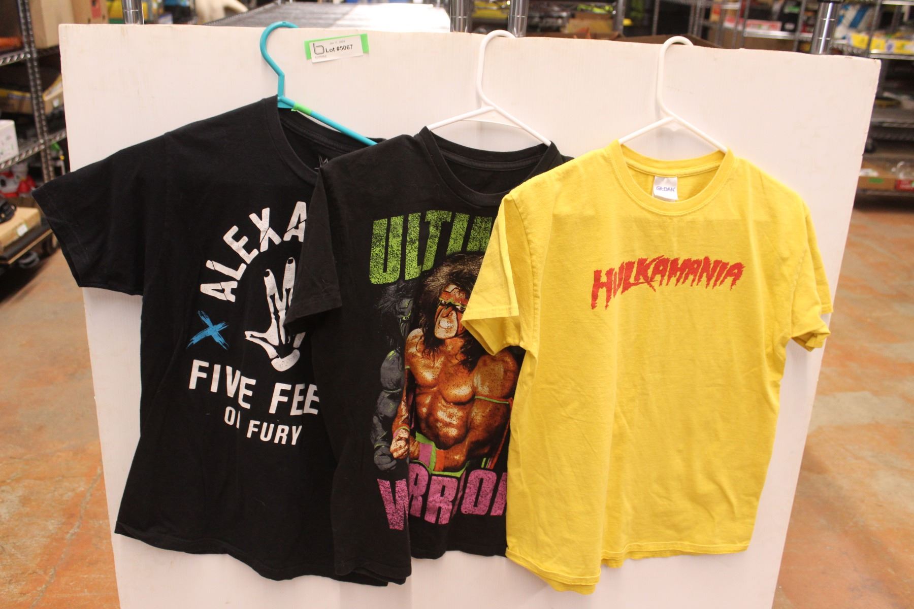 *(3) WWE T-Shirts - Hulkmania (Men's M), Ultimate Warrior (Men's M), Alexa Bliss (Women's M)