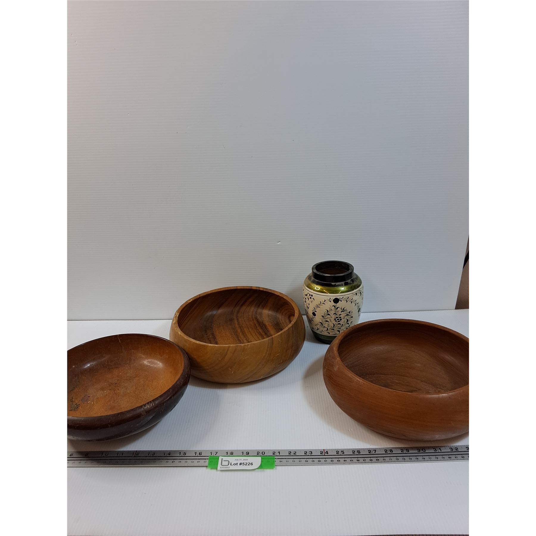 (3) Wooden Serving Bowls & Wooden Painted Vase