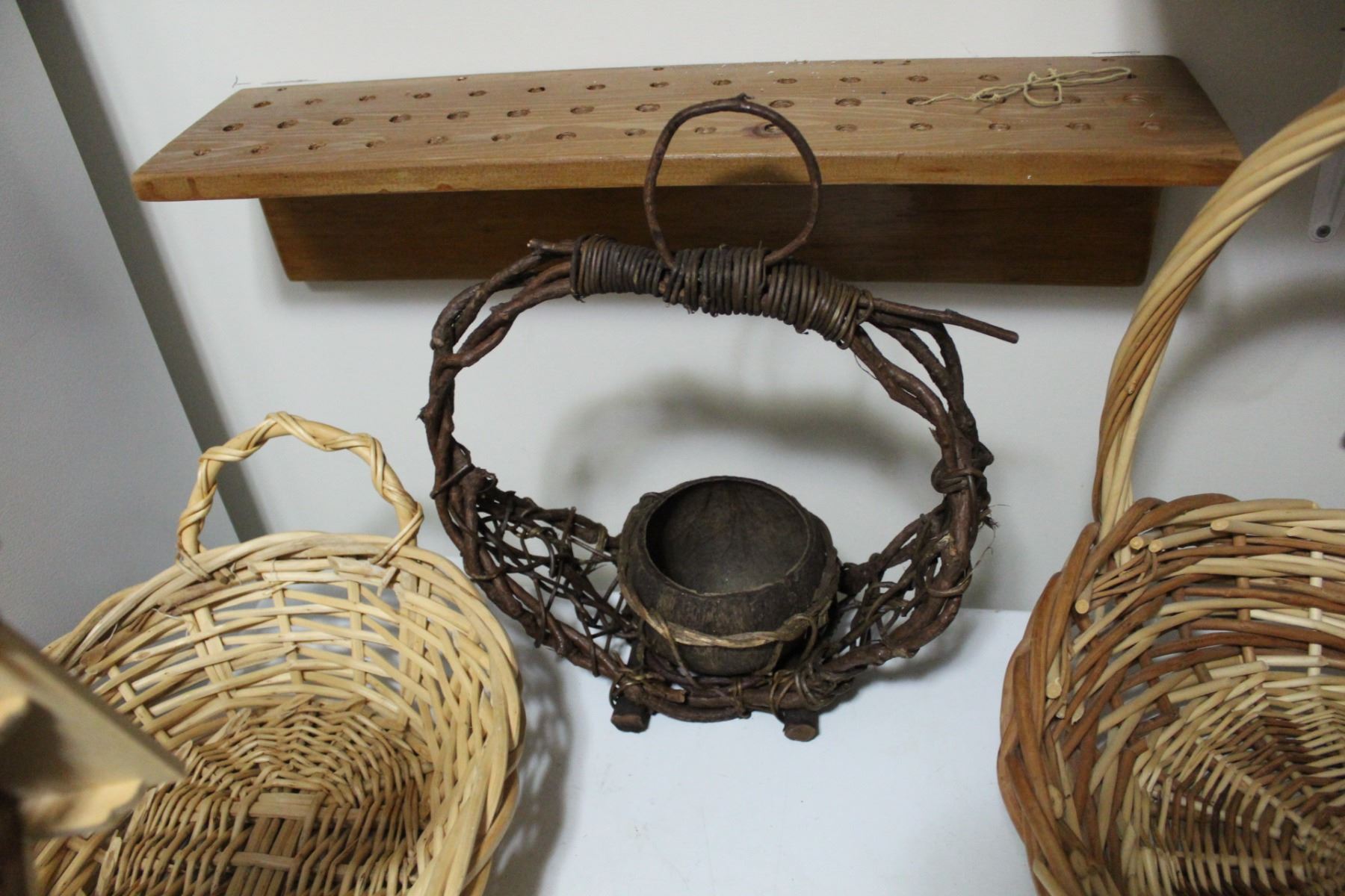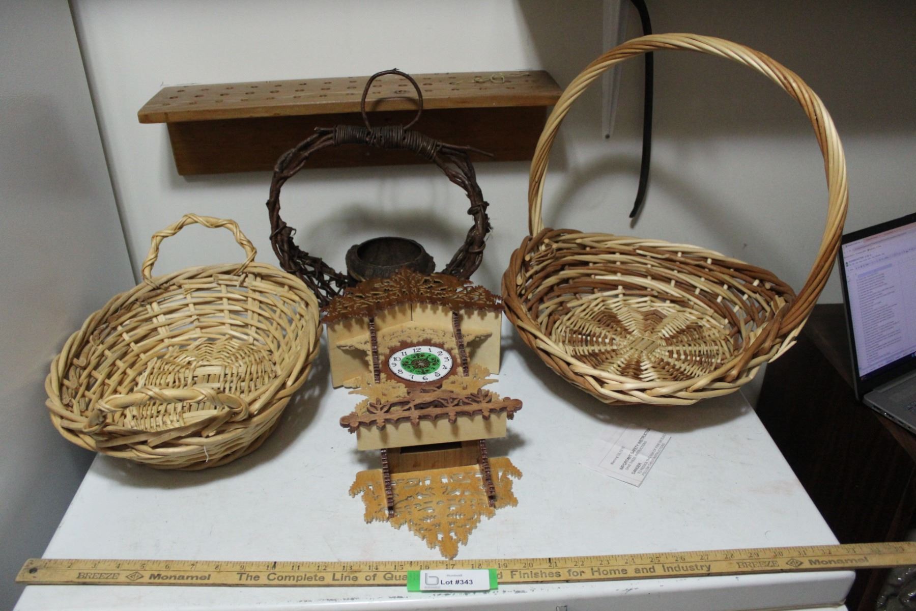 (3) Woven Baskets & Wooden Clock Housing
