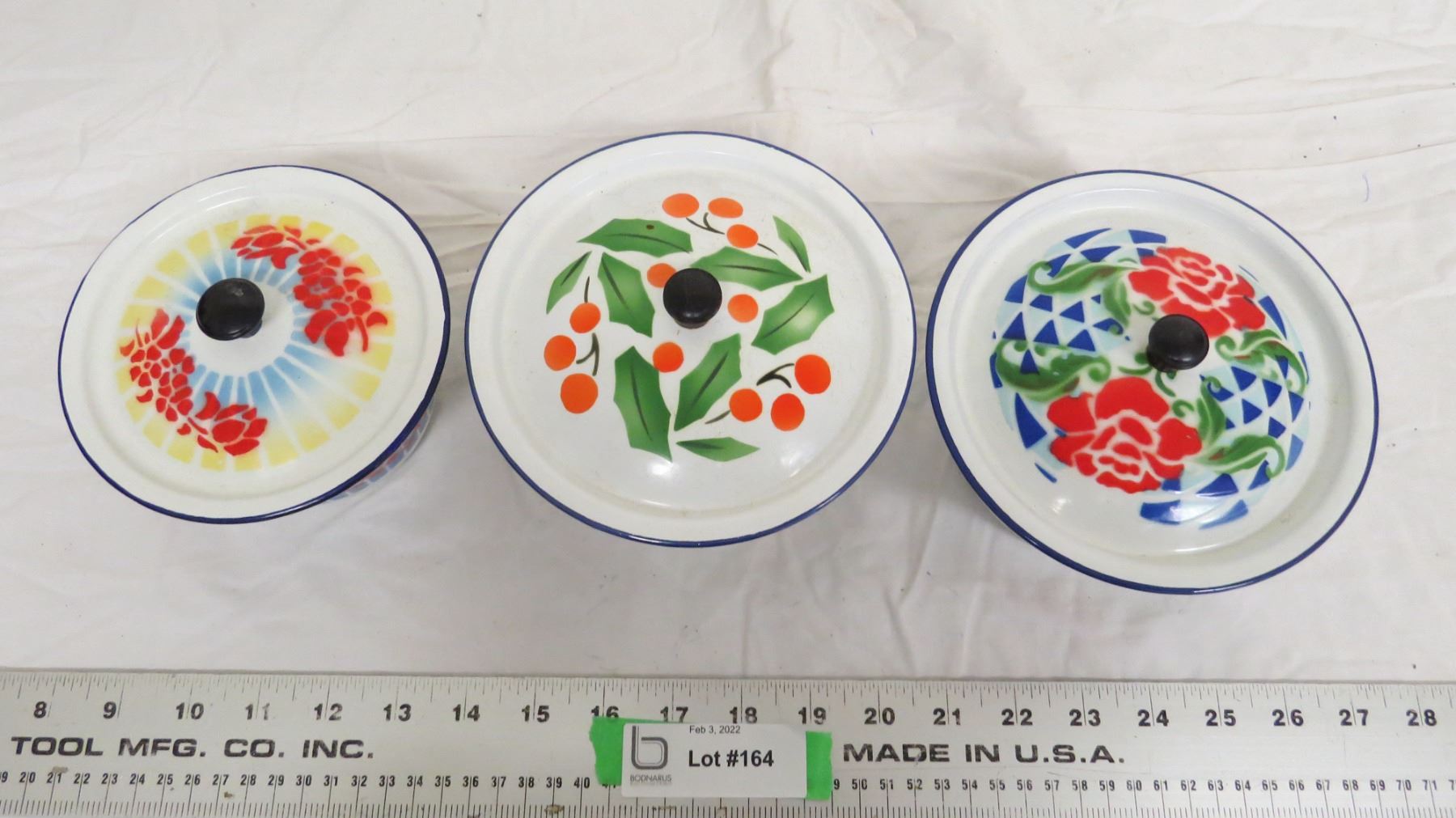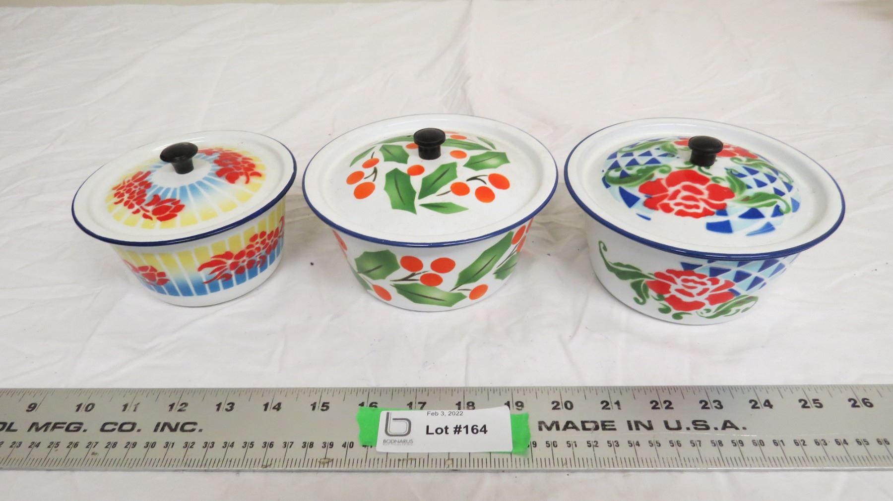 (3) enamel bowls - Bumper harvest, 3 peaches