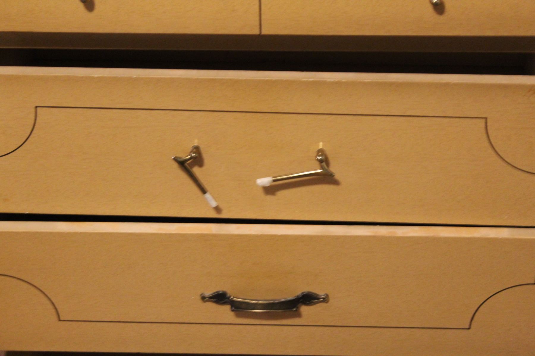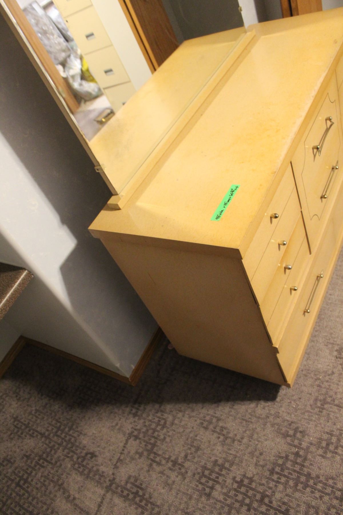 (3 pc) Vintage Bedroom Set - Headboard, Frame, Dresser (Broken Drawer Pulls) & Vanity Dresser (Dimensions in Pictures)