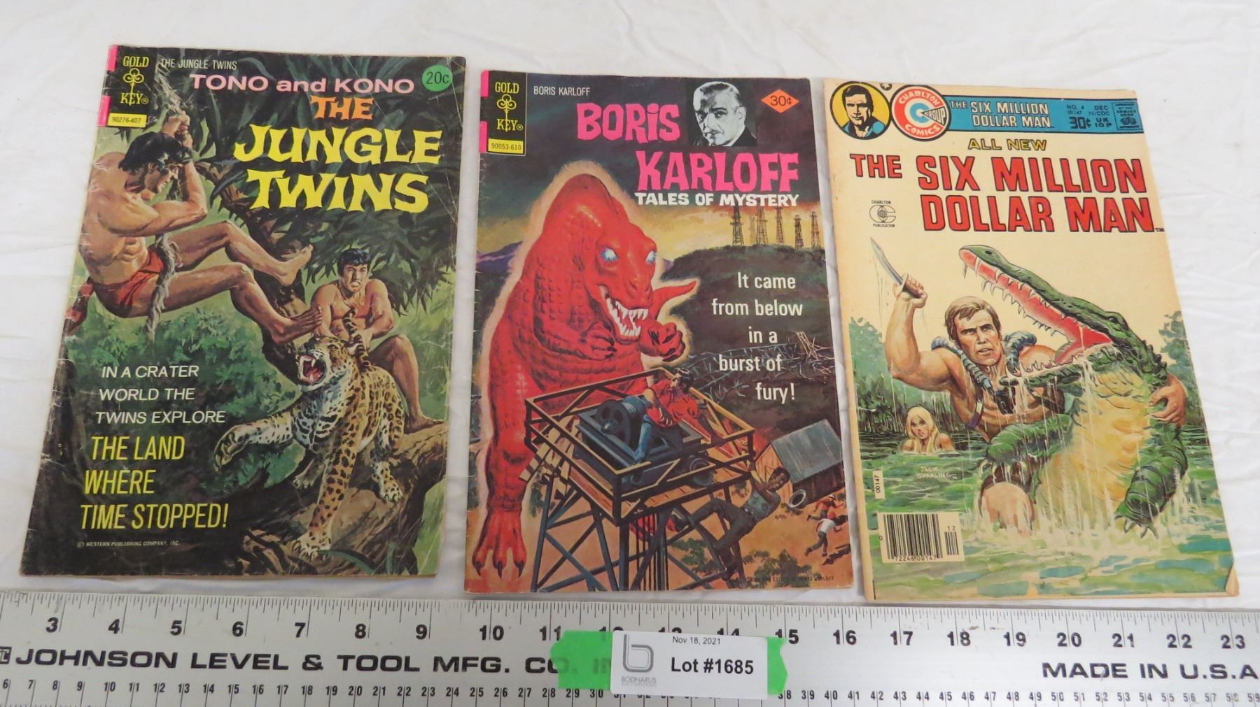 (3) the jungle twins, boris karloff, six million dollar man comics
