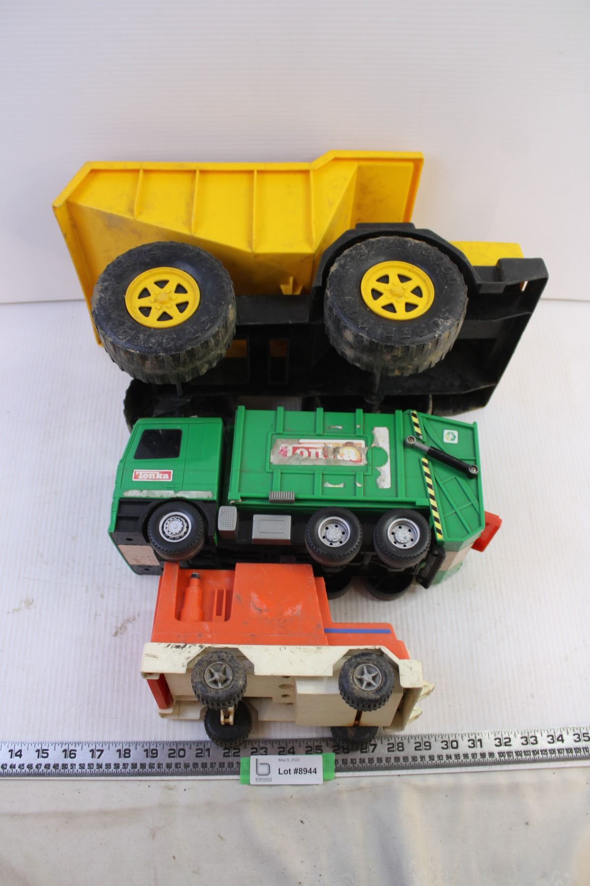 (3) toy trucks Dumptruck, Garbage Truck, Ambulance