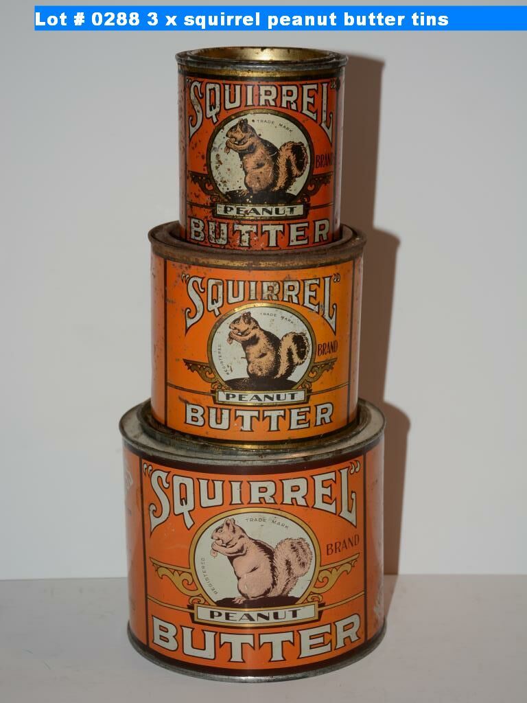 3 x squirrel peanut butter tins