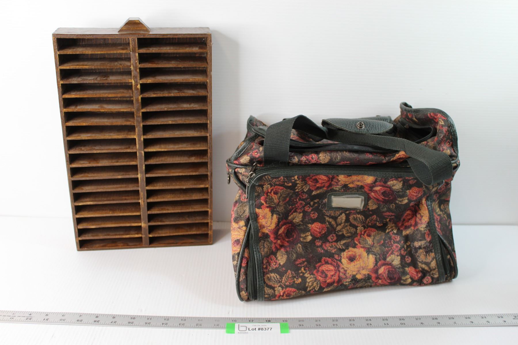 32-Cassette Tape Wood Holder-15.5"x10", Floral Small Luggage Bag-14"x10"x9"