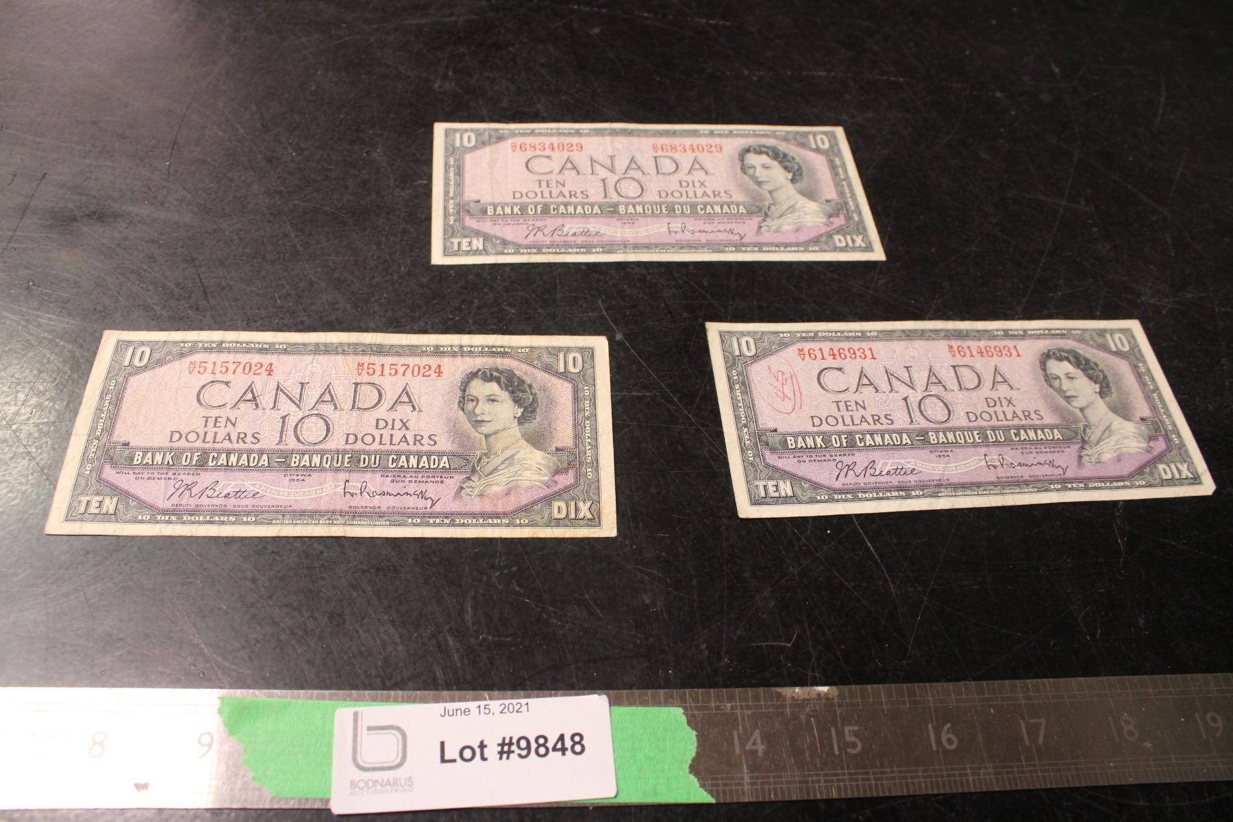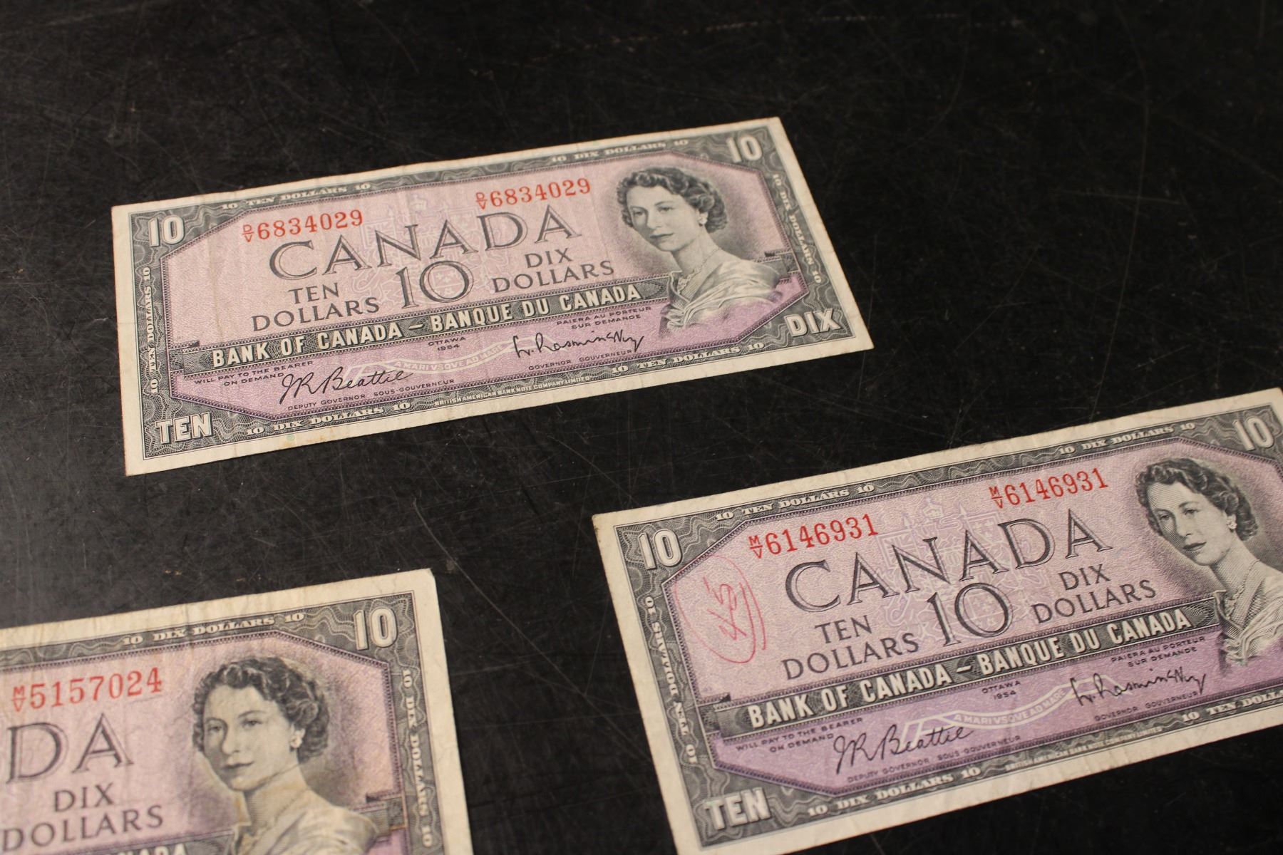 (3X THE MONEY) 1954 Canadian $10 Bills