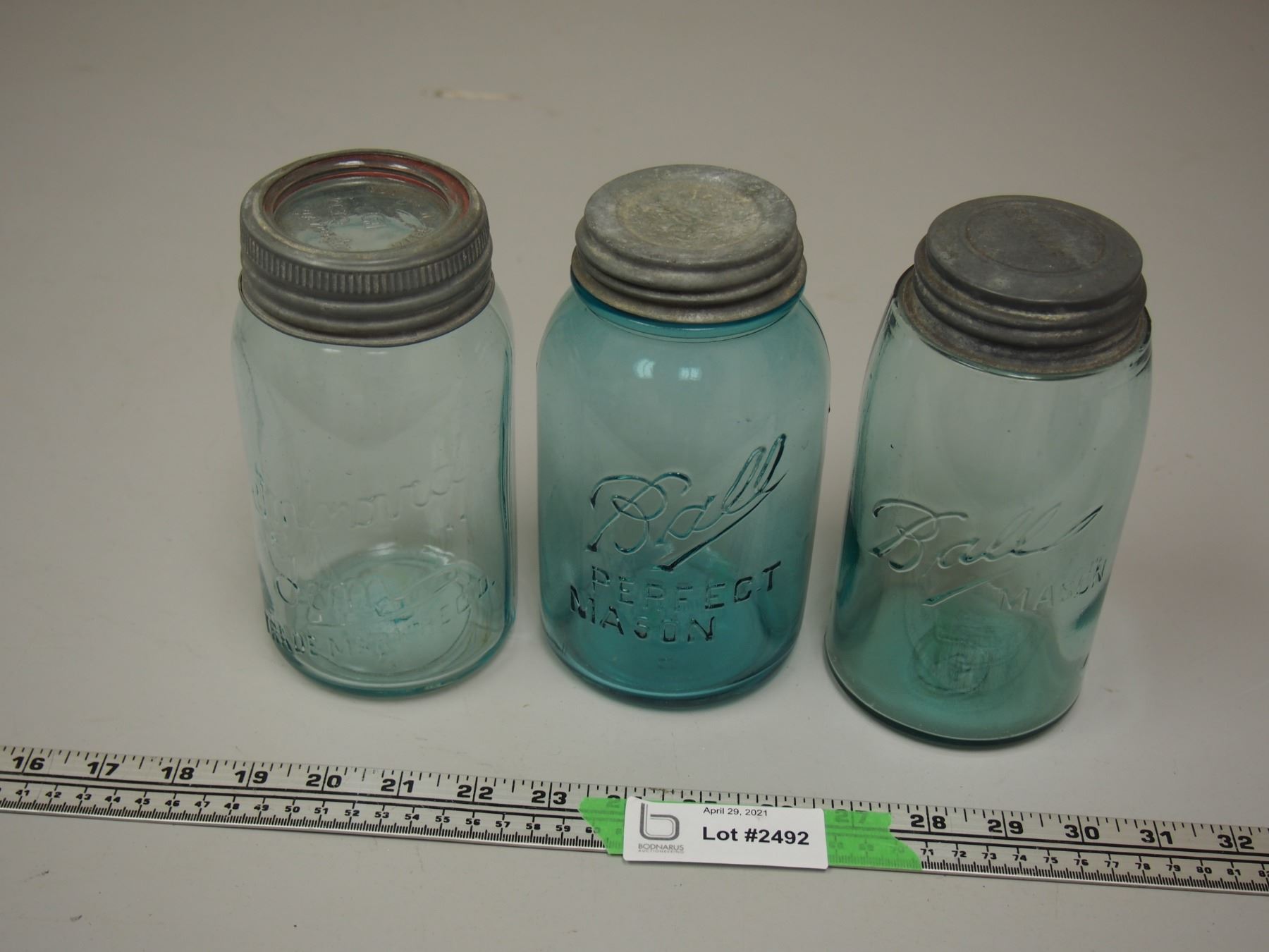 (3X THE MONEY) Vintage Blue Mason Jars (3)