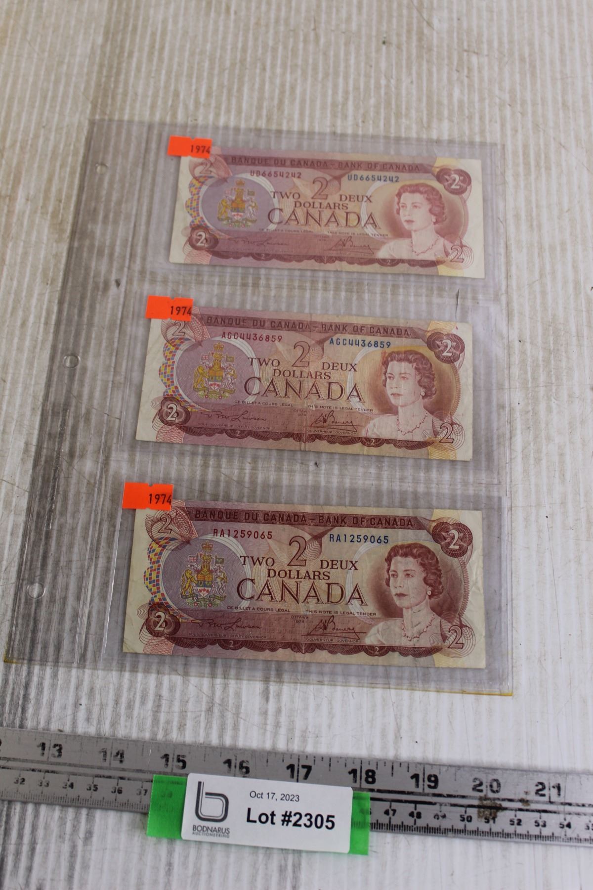 (3x Bid Price) (3) 1974 $2 Canadian Bills