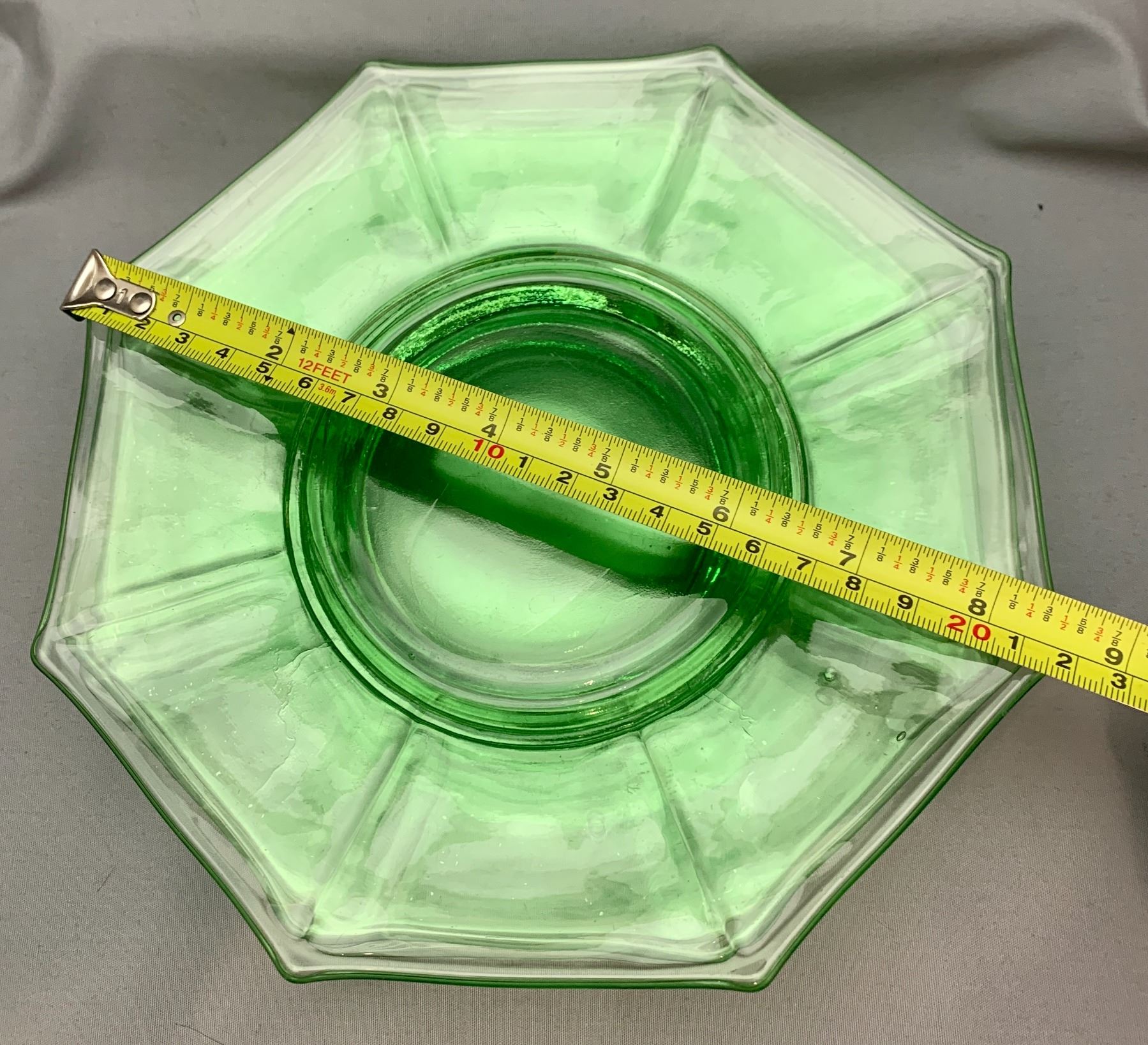 (3x Bid Price) (3) Green Depression Glass Plates