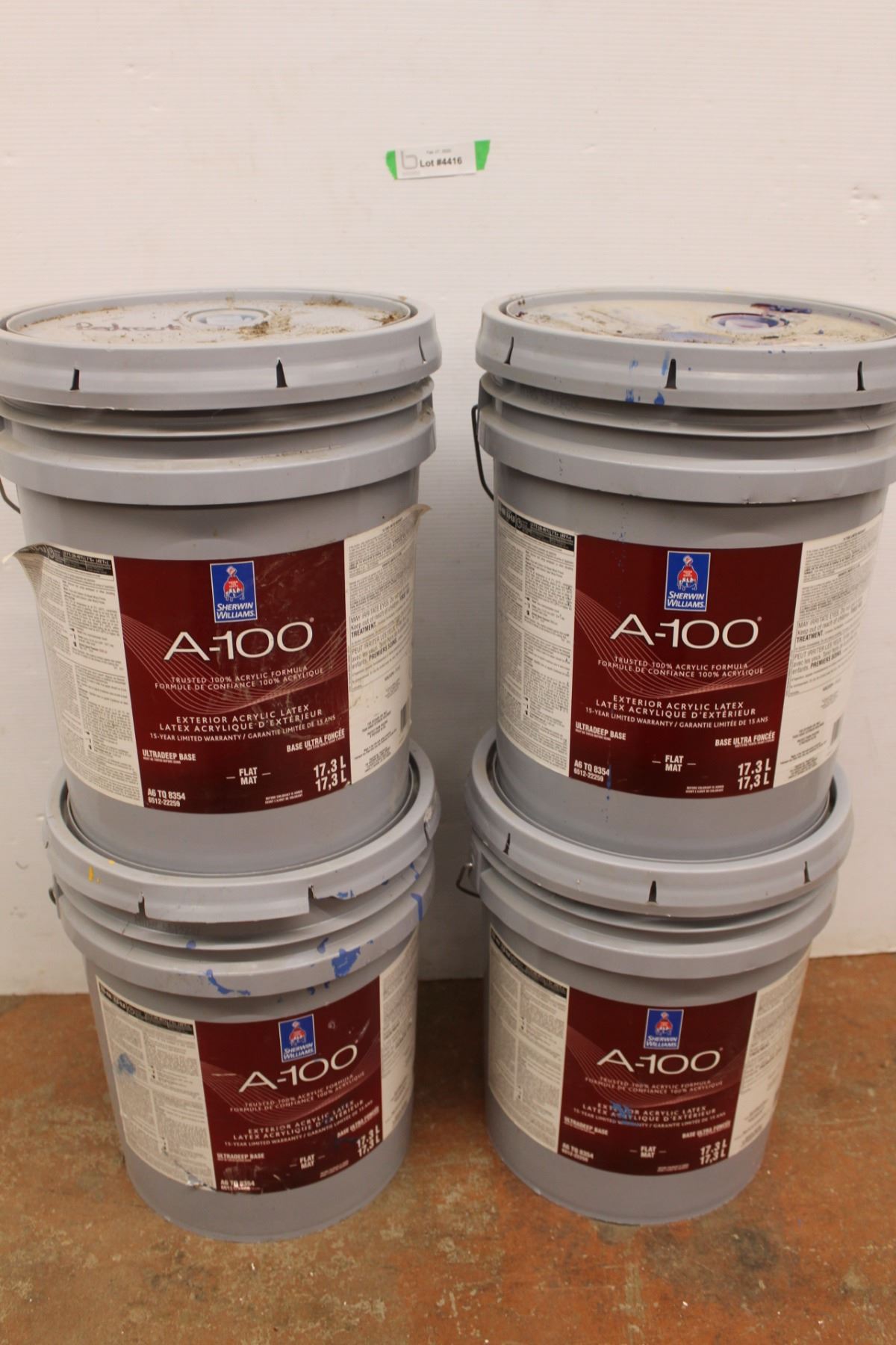 ** (4) 17.3L Pails of Sherwin Williams A100 Exterior Acrylic Latex Paint - Partials - All 1/3 TO 2/3