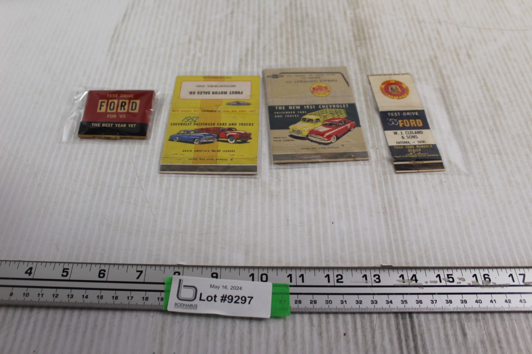 (4) 1950s and 60s Chev & Ford Matchbooks