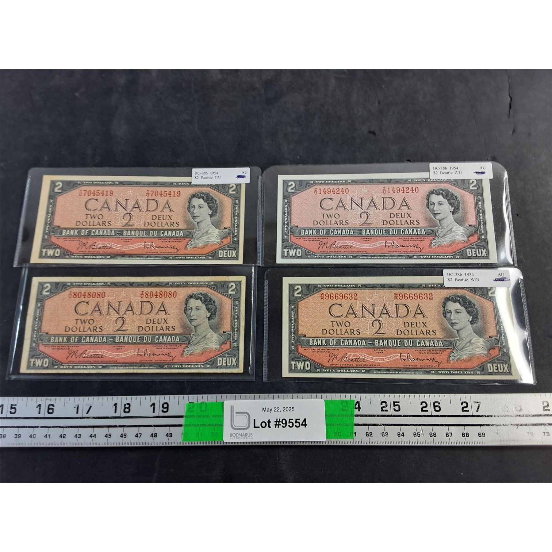 (4) 1954 Beattie/Rasminsky Centennial Canadian 2 Dollar Bills
