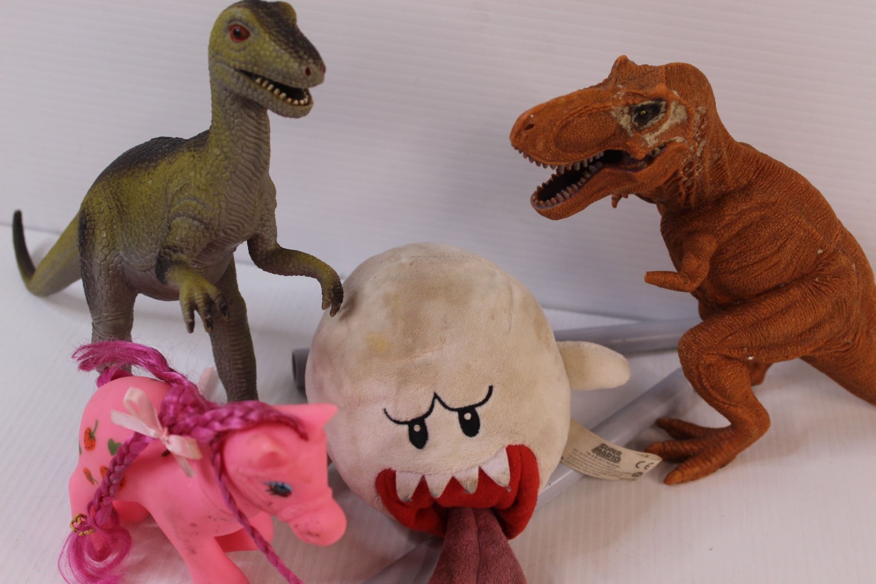 (4) 3 - Plastic Dinosaur Figurines & Pony & 1 - Stuffy