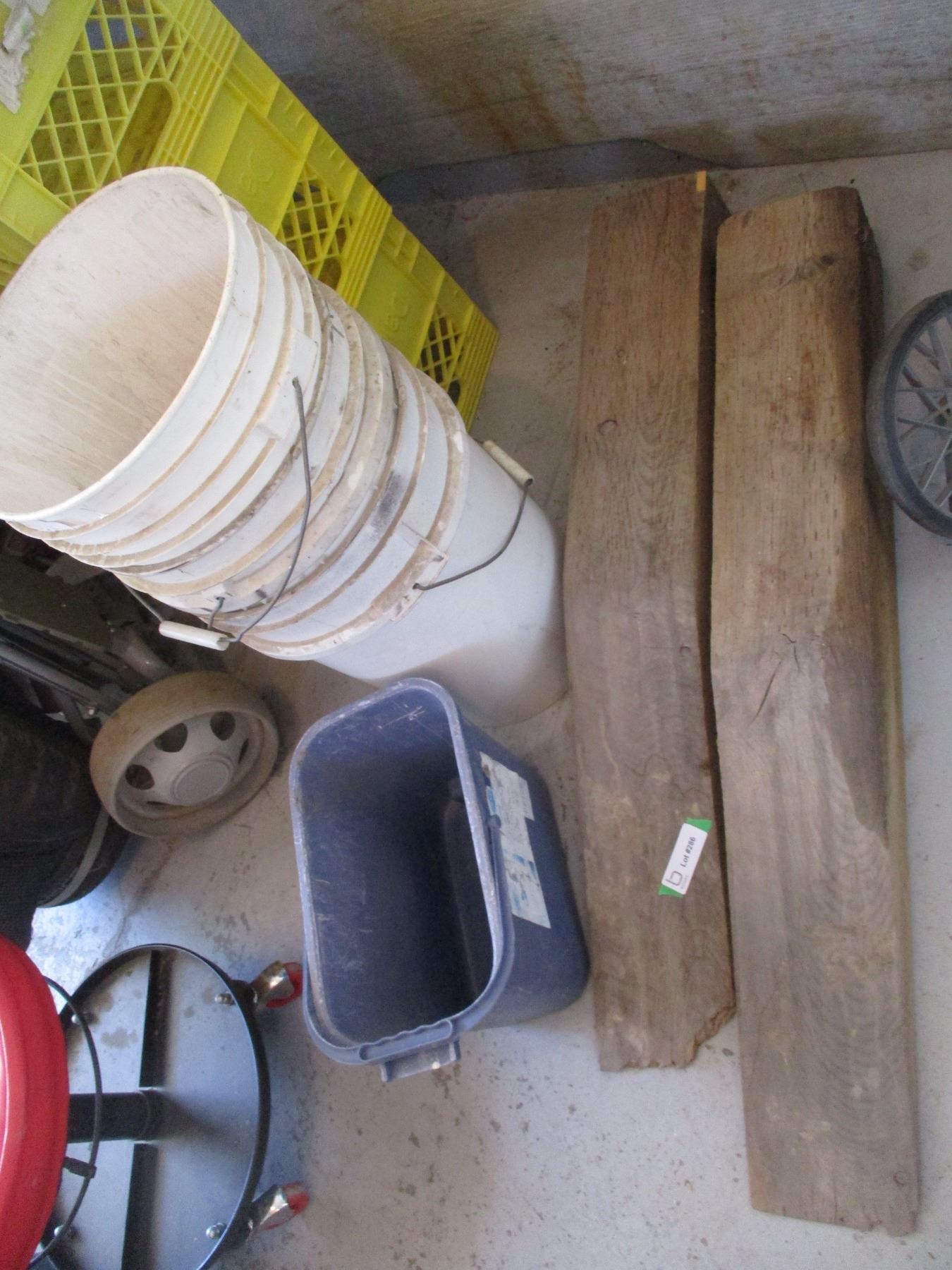 (4) 5 Gallons Pails, Wooden Car Ramps