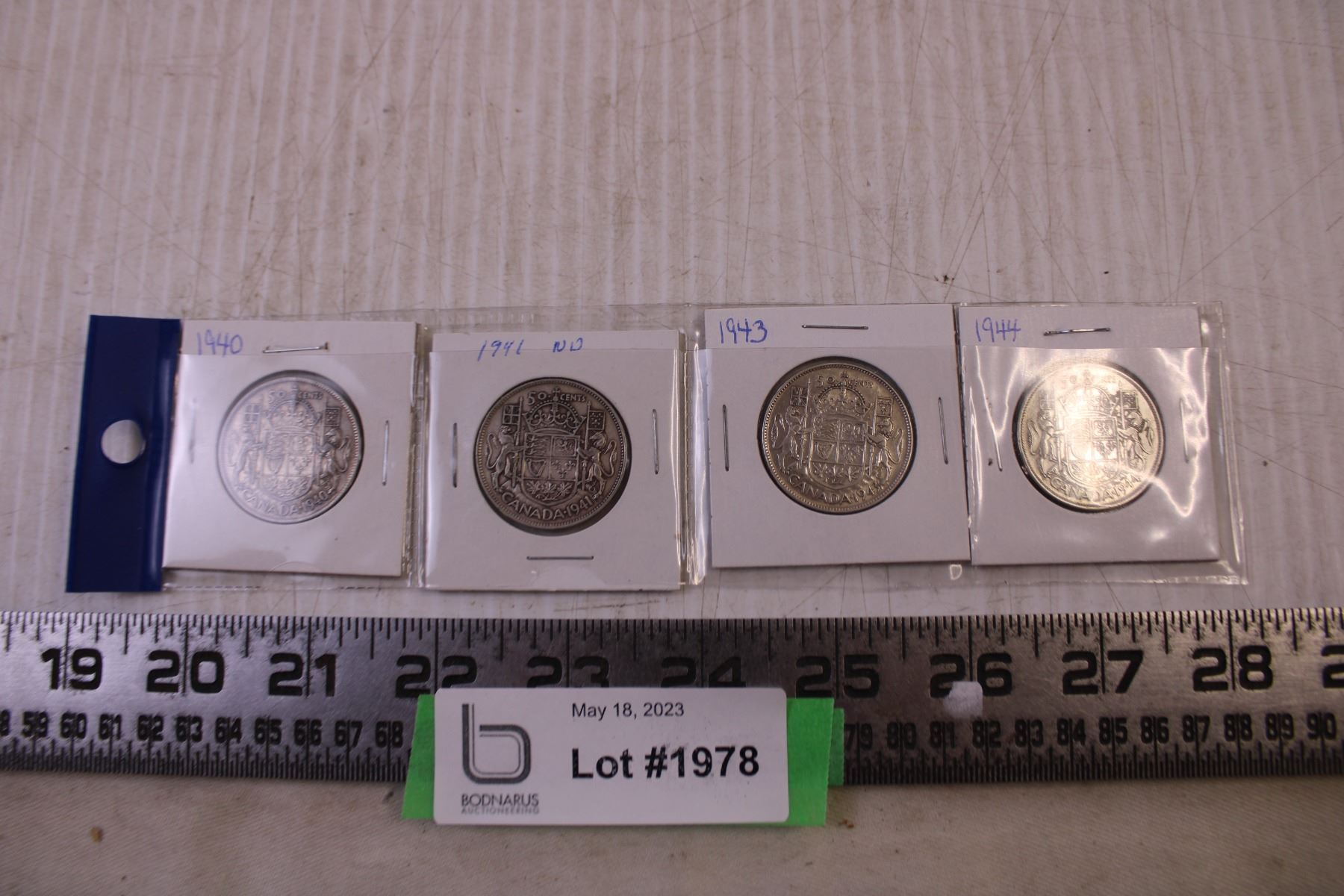 (4) 50 Cent Coins 1940,1941,1943,1944 Canadian