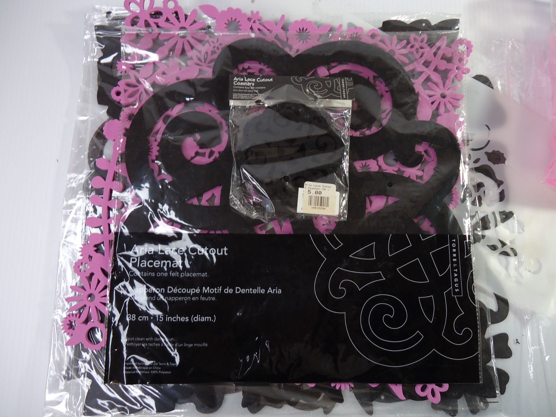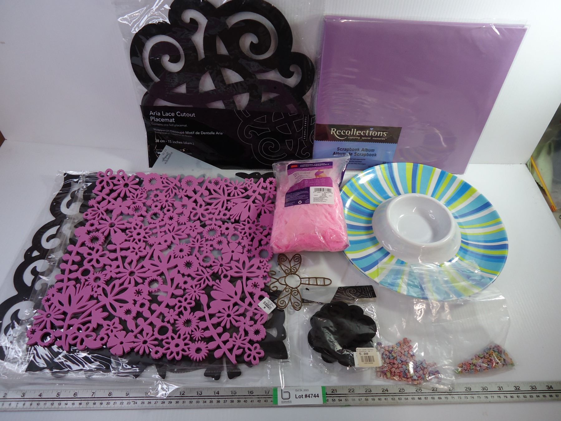 (4) Air lace Cutout Placemats, Scrapbook Album,(2) Plastic Serving Trays and scrapbook accessories