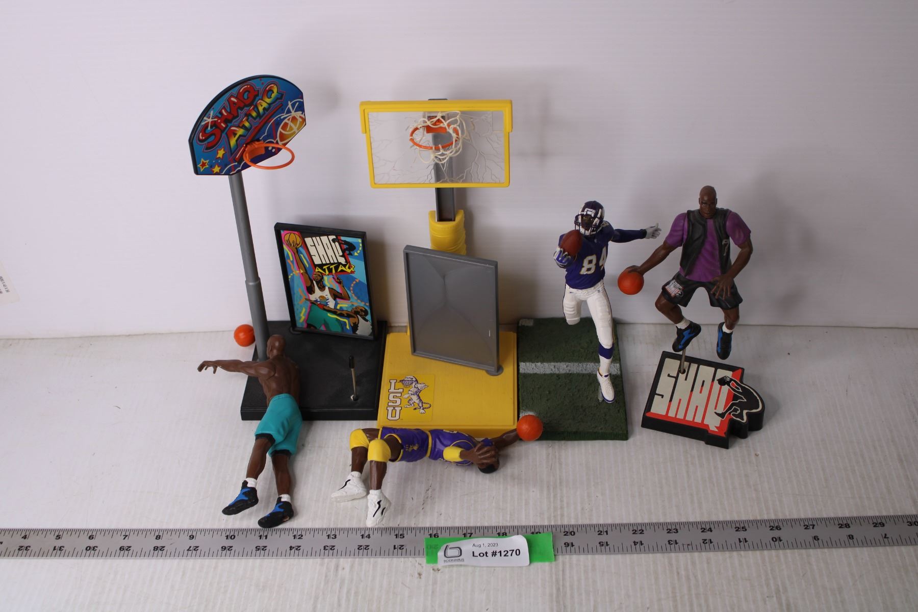 (4) Basketball and Football Figurines w/ Stands- SHAQ