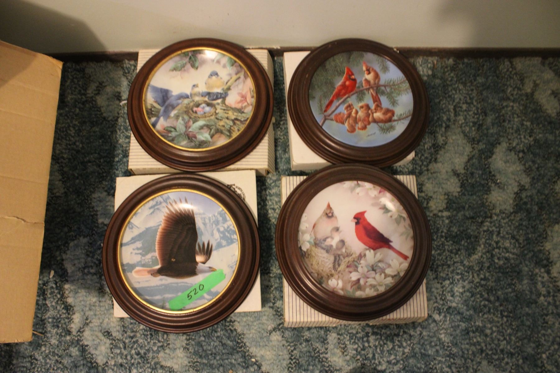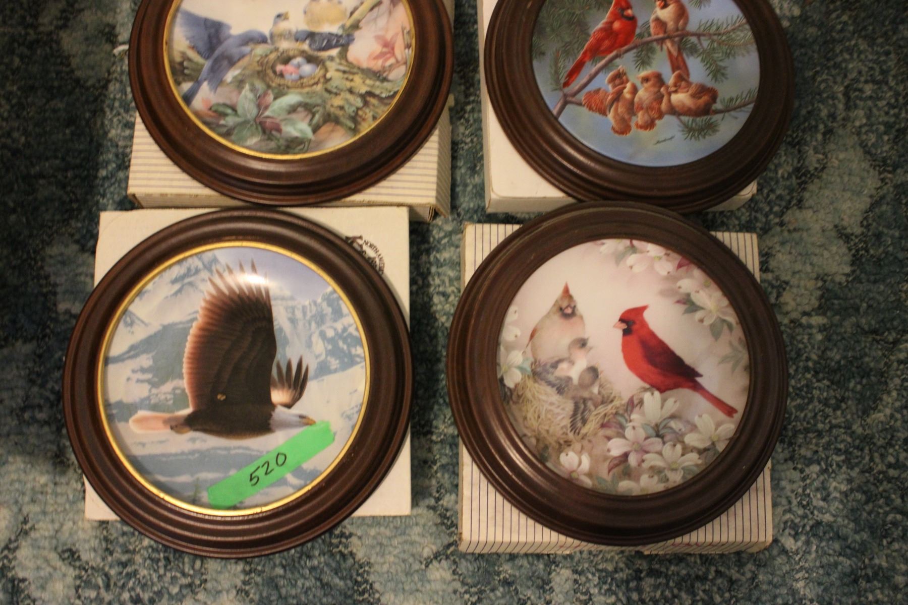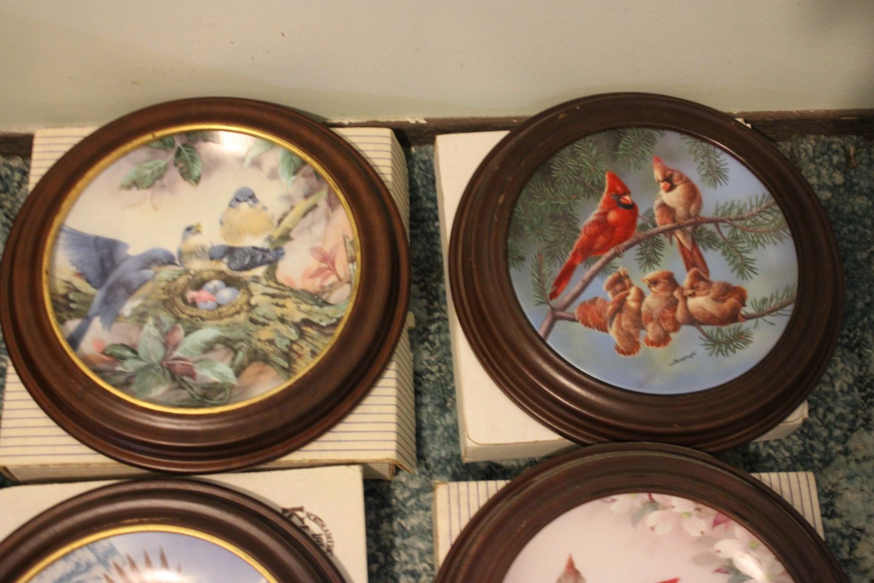 (4) Bird Collector Plates in Wooden Frames in Boxes