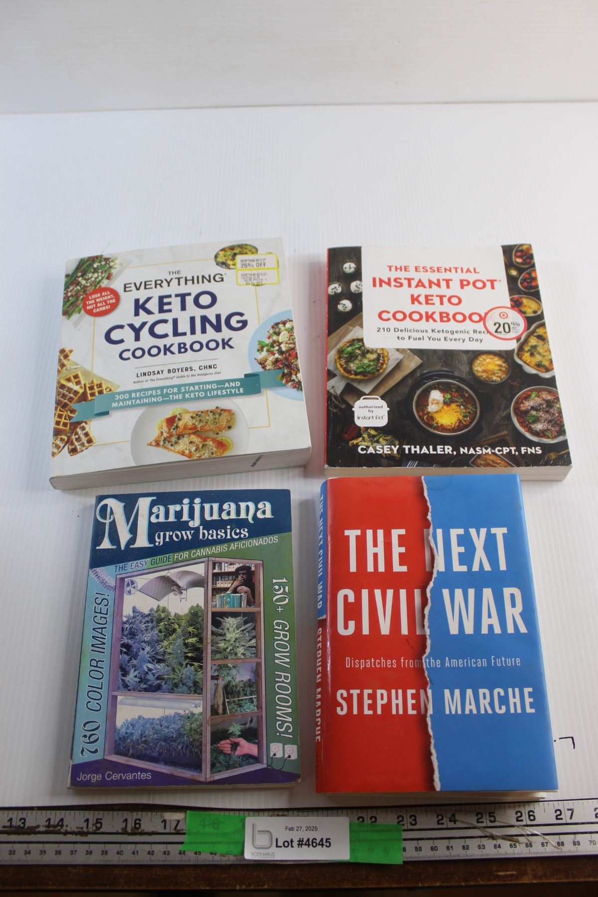 (4) Books - Keto Cookbook, The Next Civil War and Marijuana Grow Basics