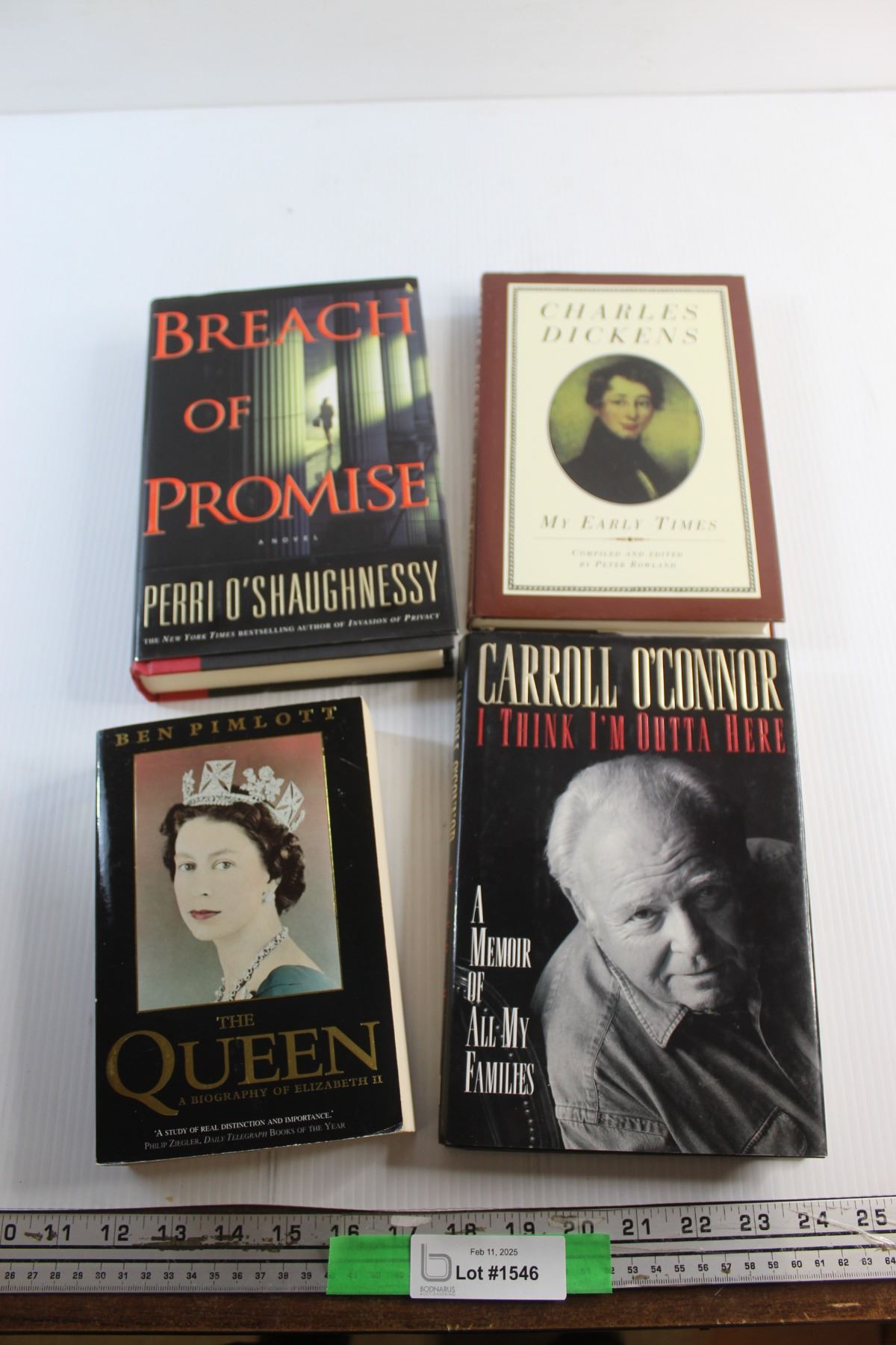 (4) Books - The Queen Elizabeth II Biography, Charles Dickens and Caroll O Connor