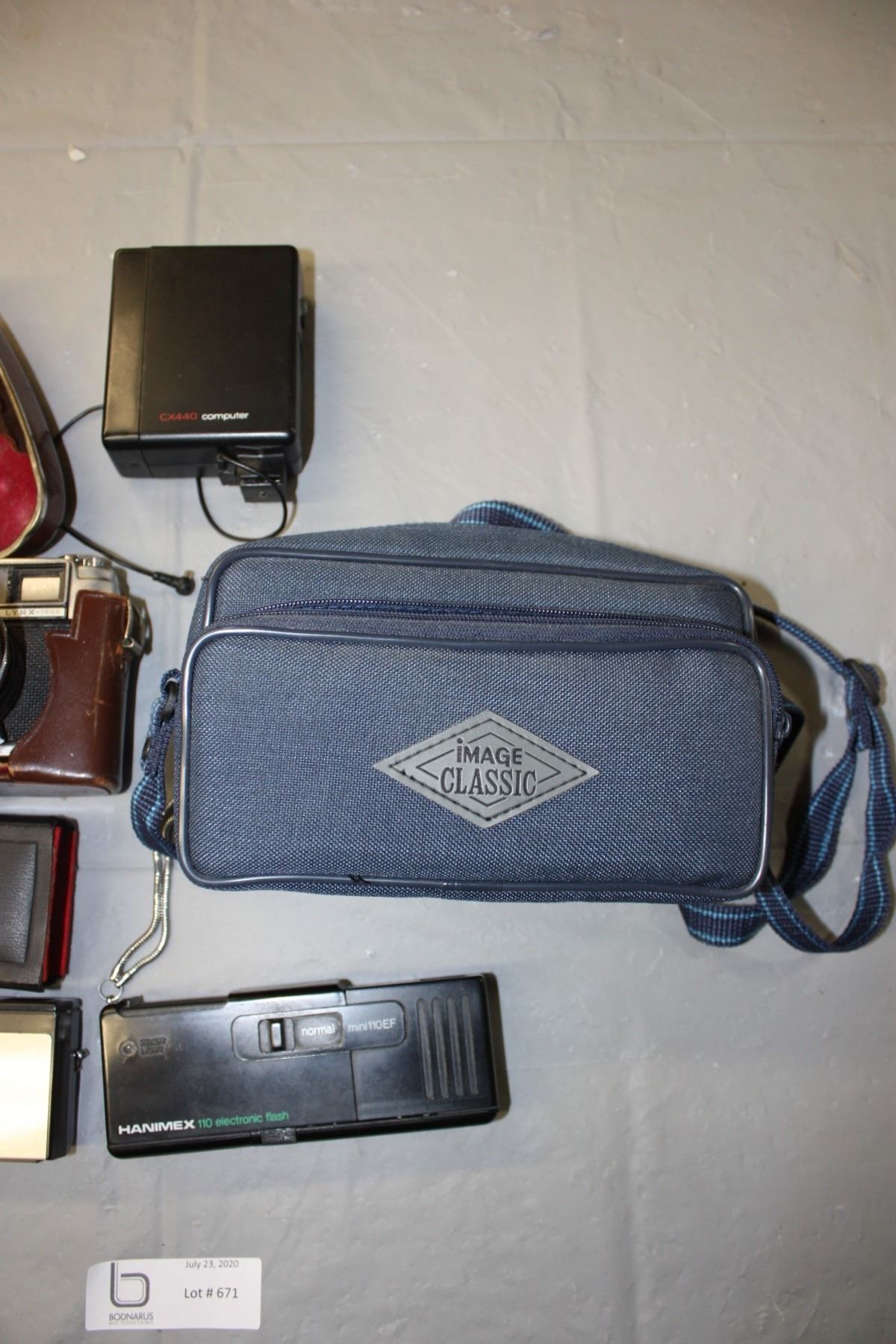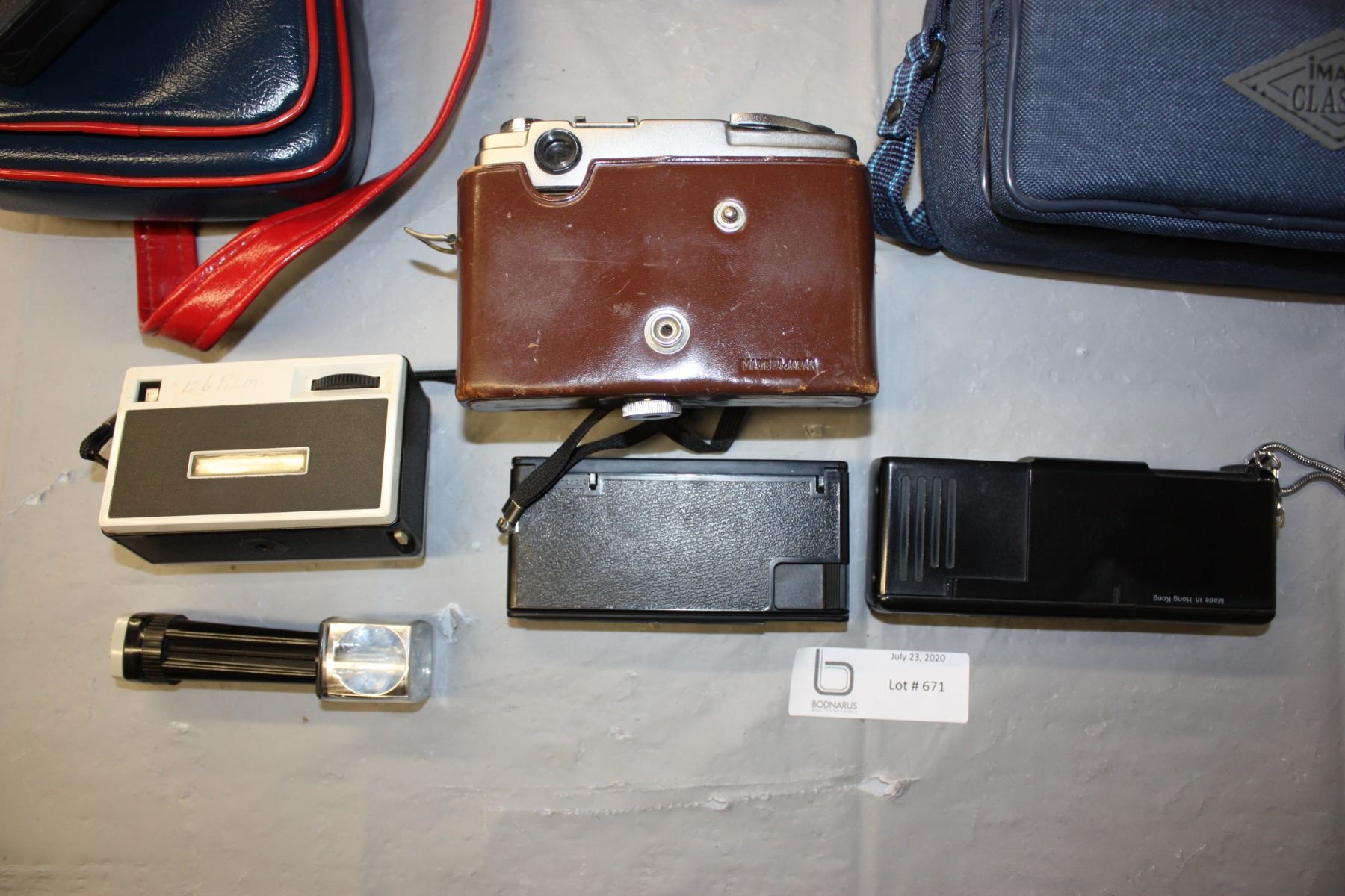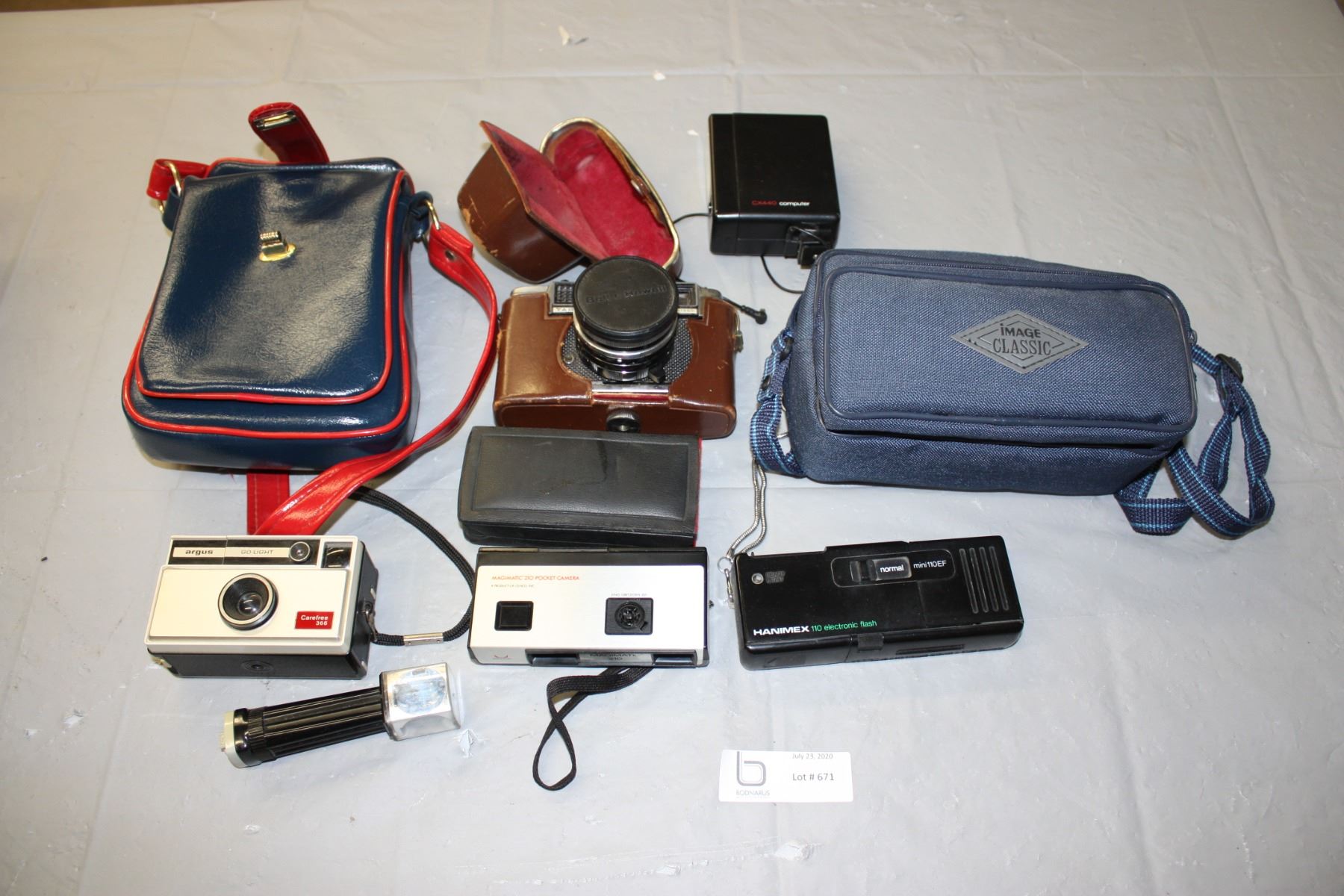 4 Cameras: Yashica 35mm w/ Hannimex Flash, Hannimex Mini 100, Argus Carefree 366 and Magicmatic 210