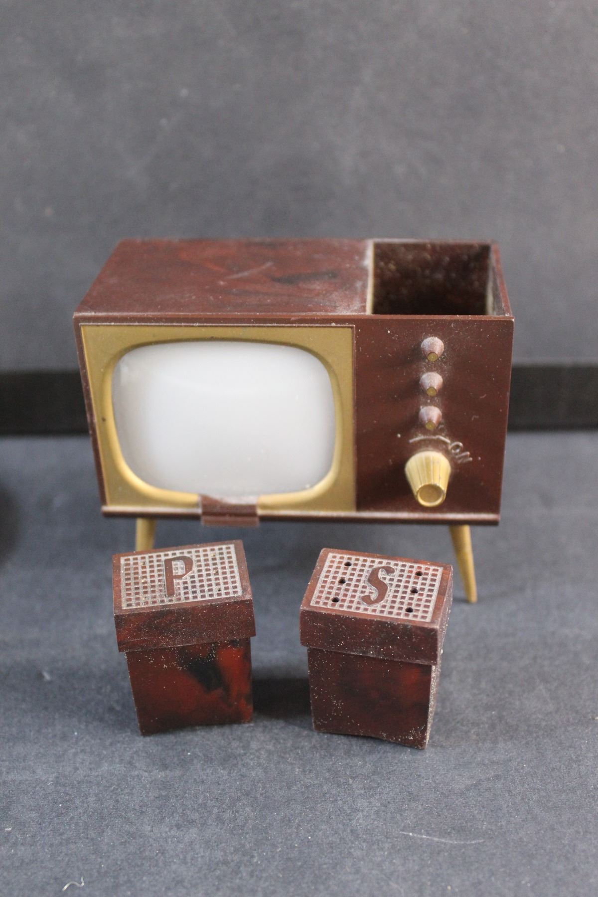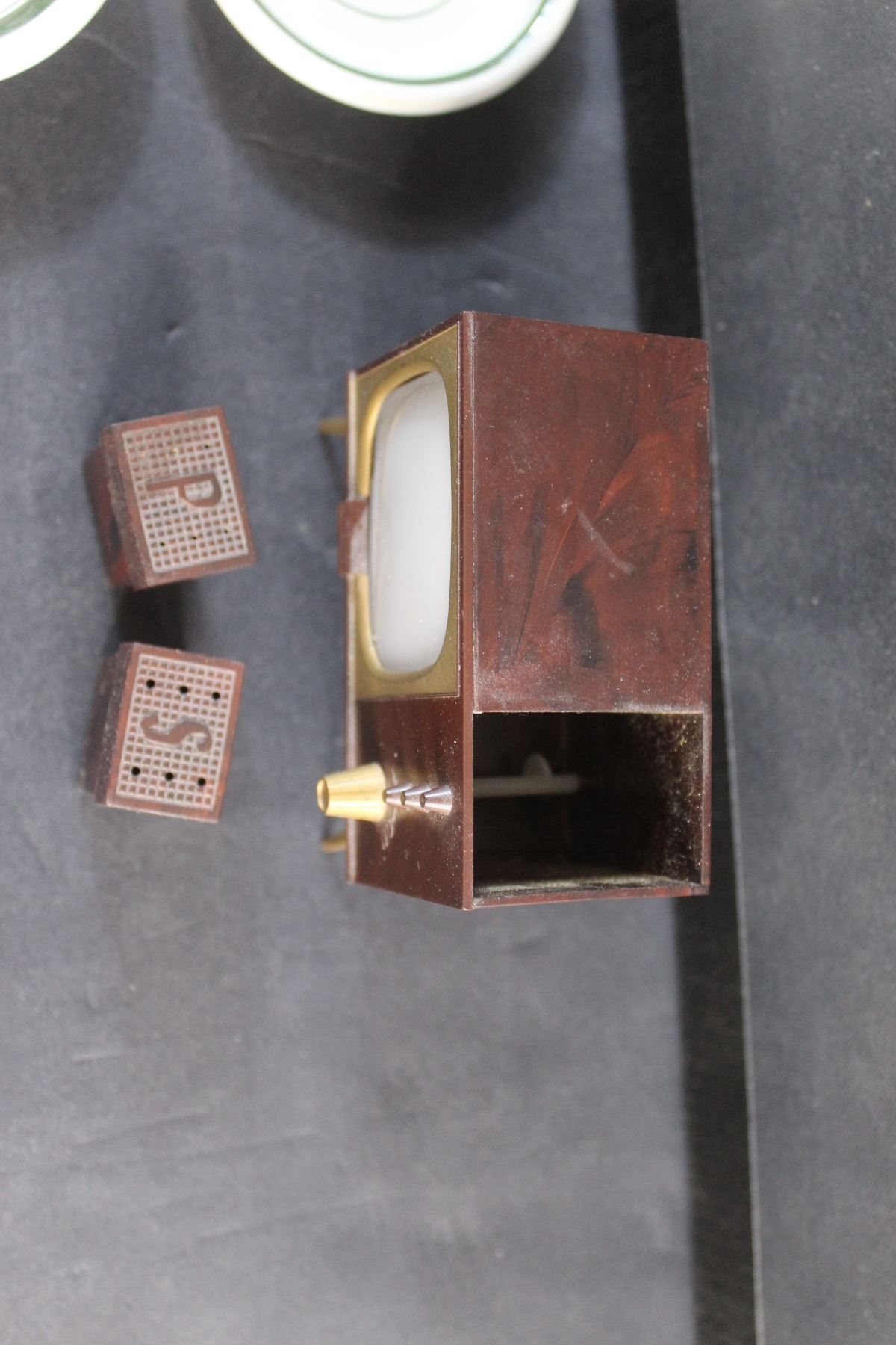 (4) Ceramic Butter Pats and Vintage TV Style Salt & Pepper Shakers