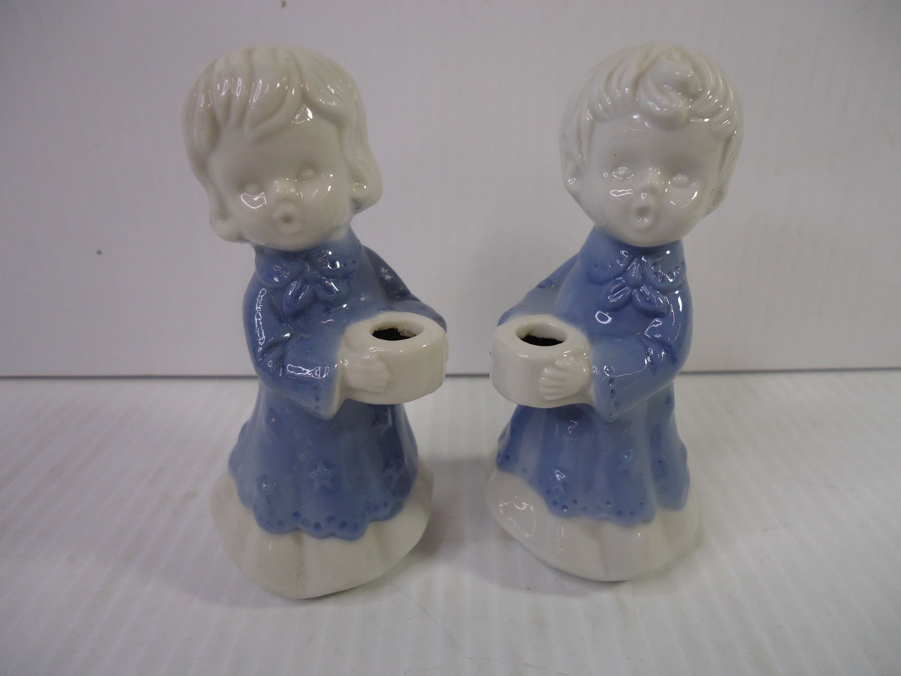 (4) Ceramic Kitten Ornaments,(4) Ceramic Wall Hangers,(2) Boy/Girl Mini Tapper Candleholders and (8)