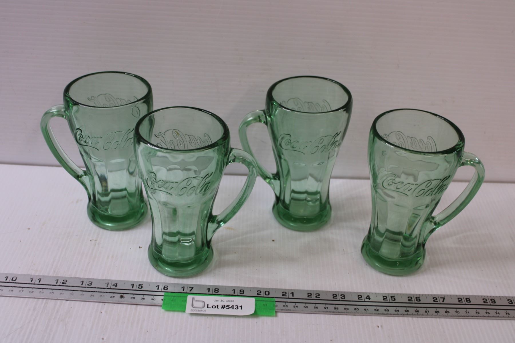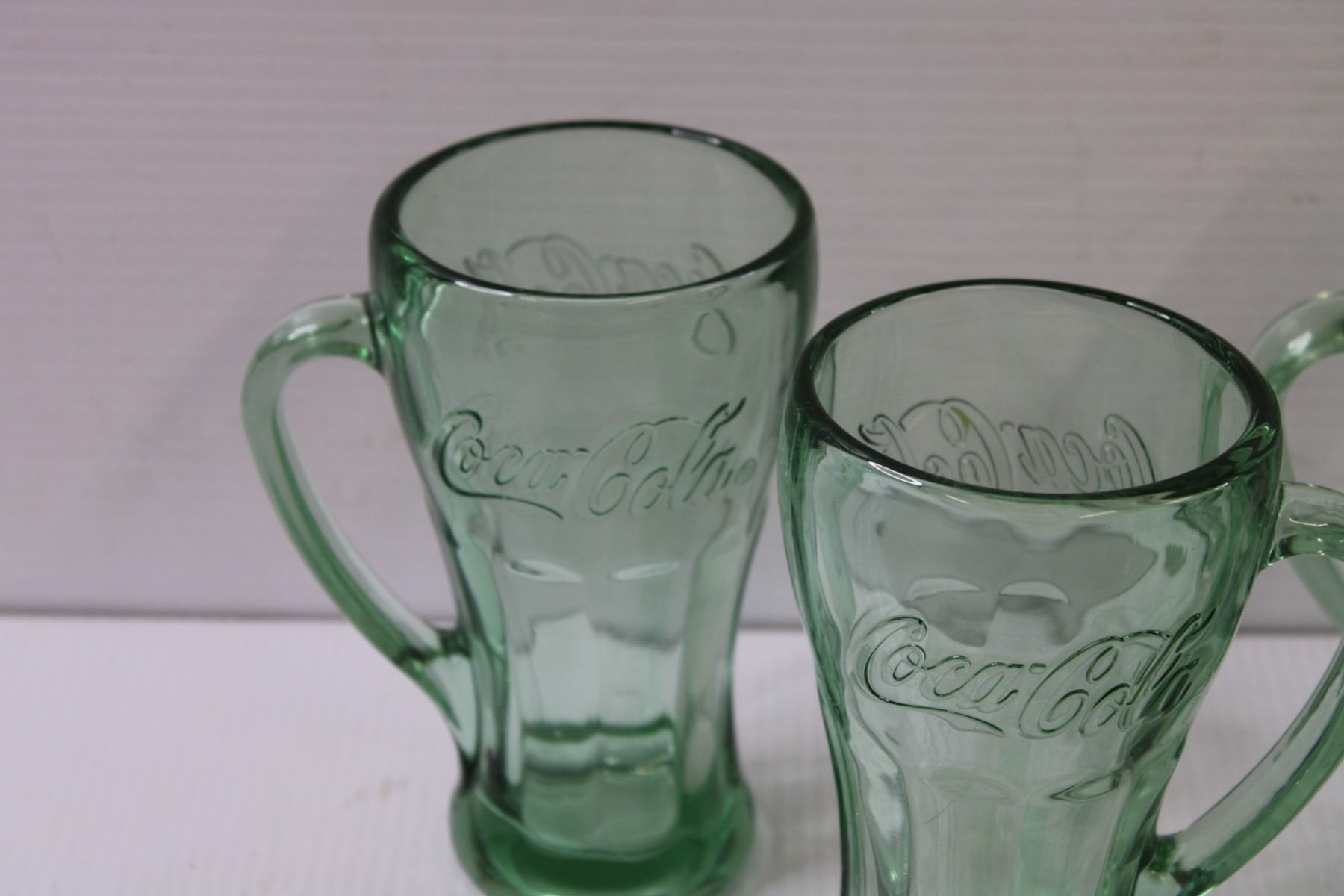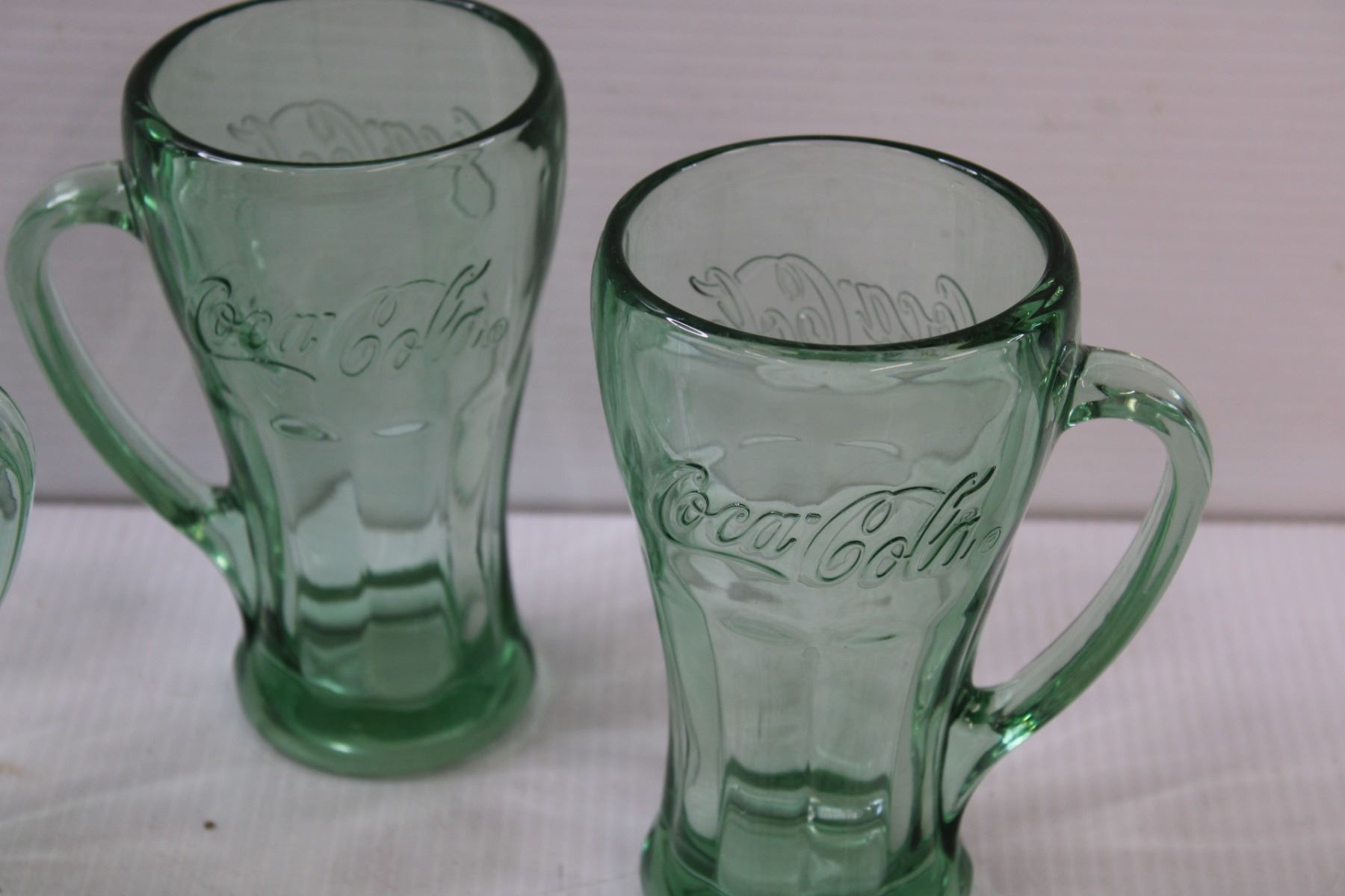 (4) Coca Cola Green Glass Handled Glasses