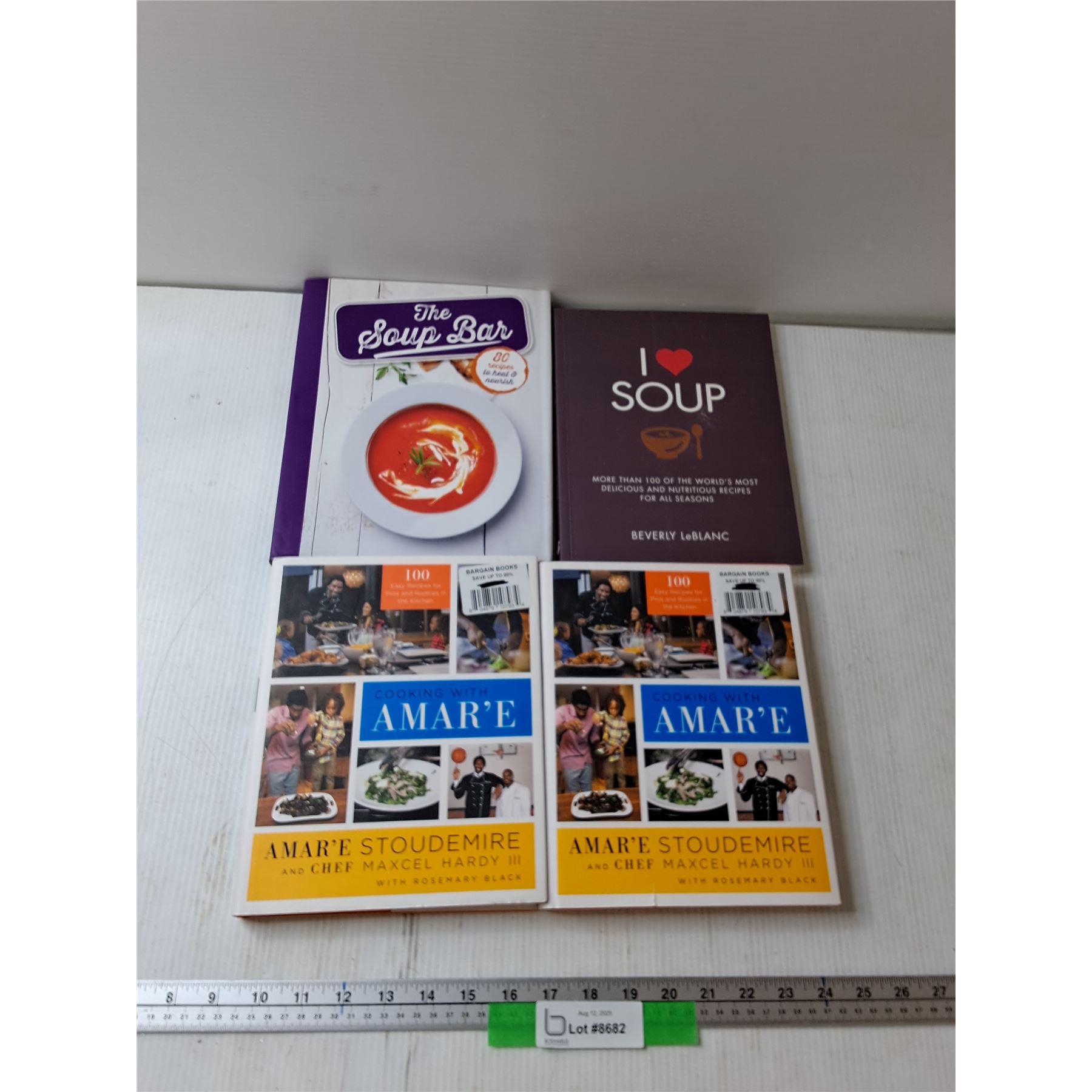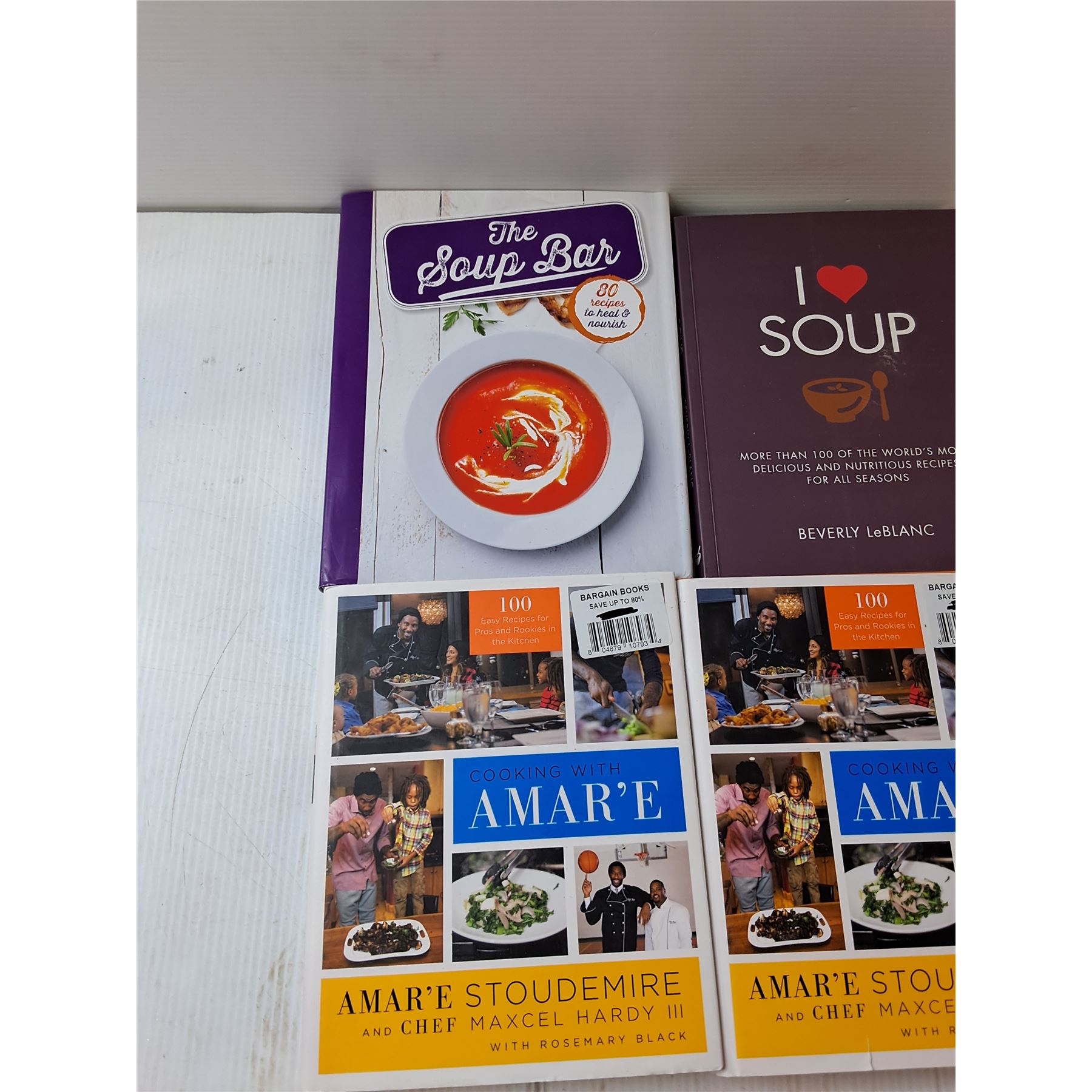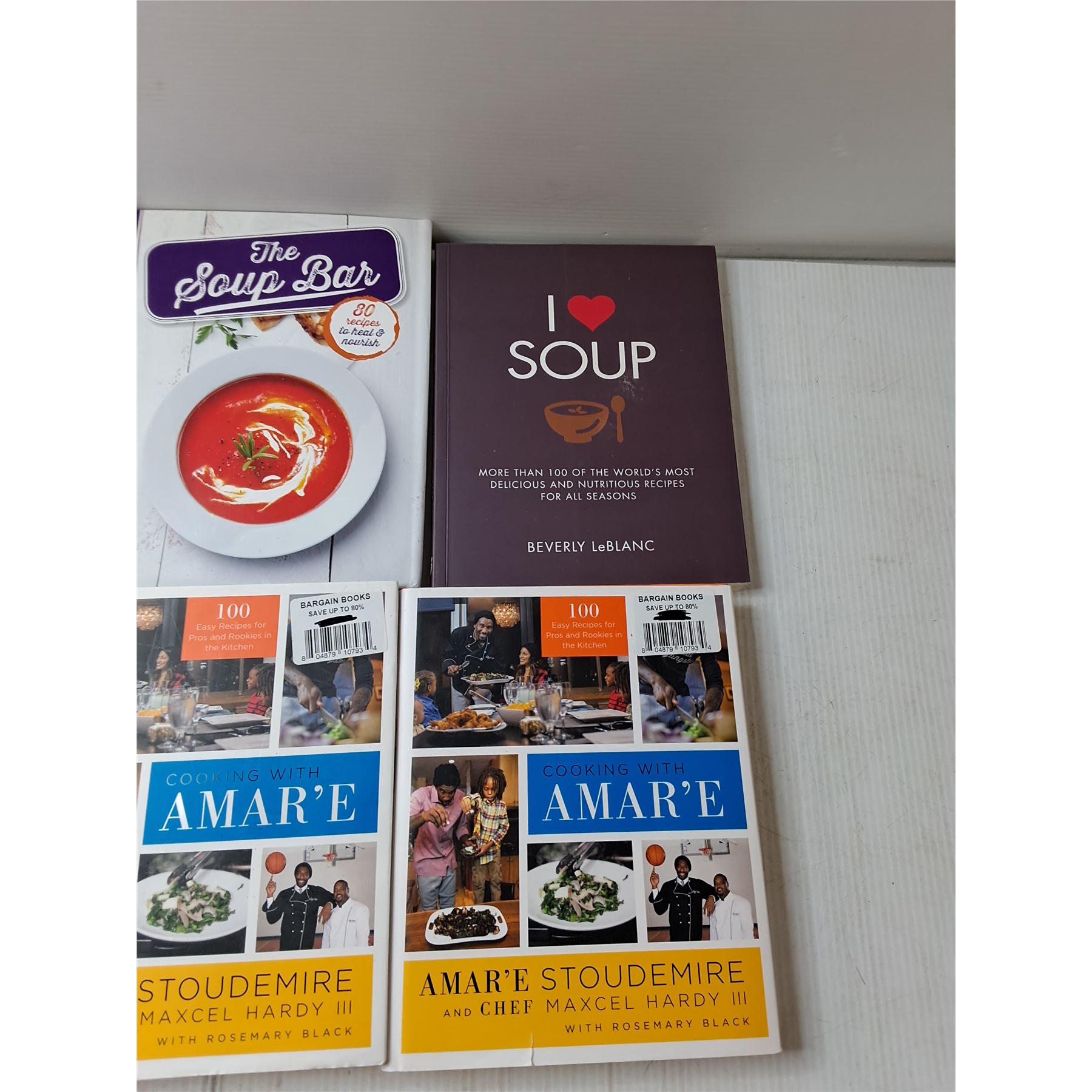 (4) Cookbooks - (2) Cooking With Amar'e, The Soup Bar, I Love Soup