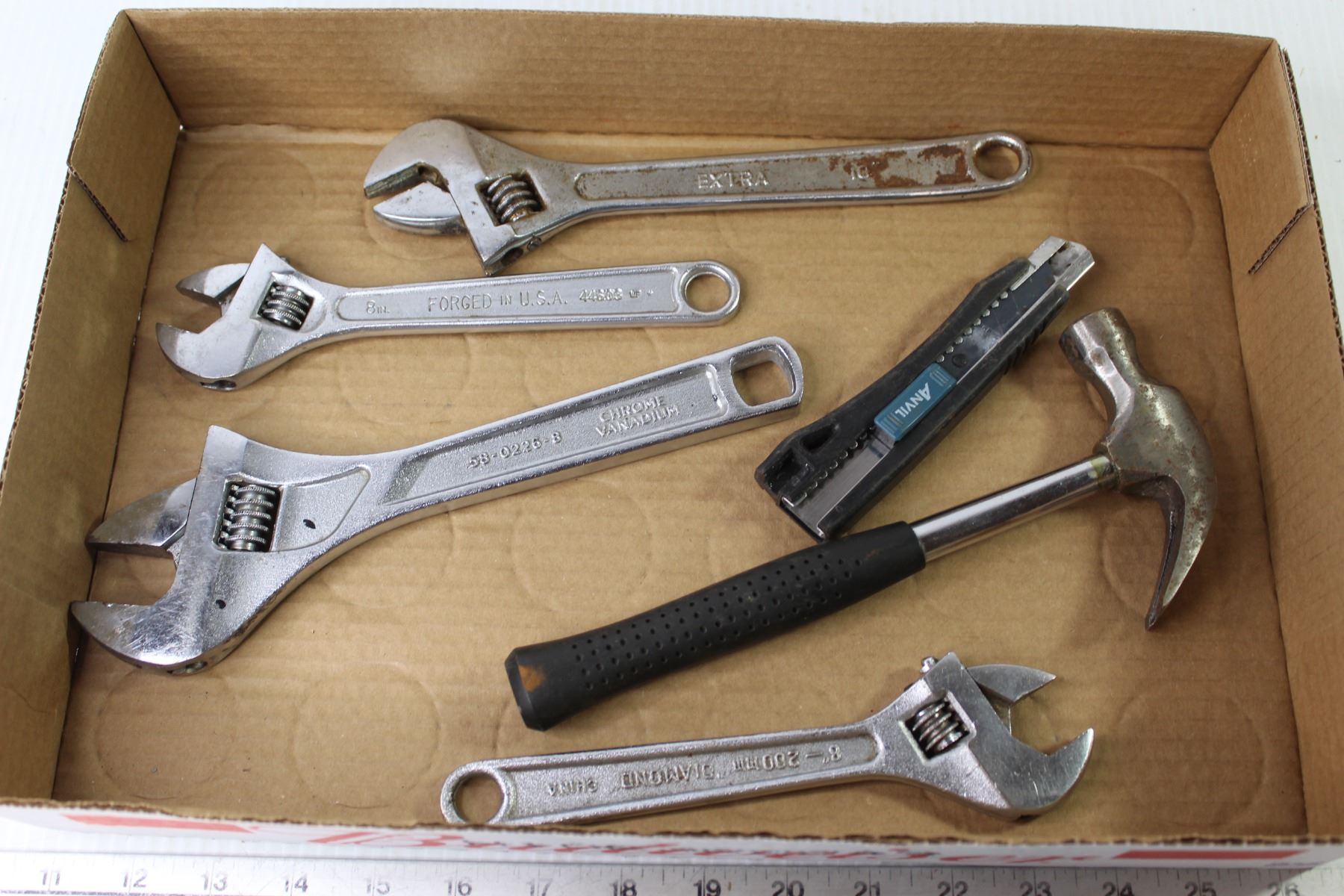 (4) Crescent Wrenches - Utility Knife - Hammer