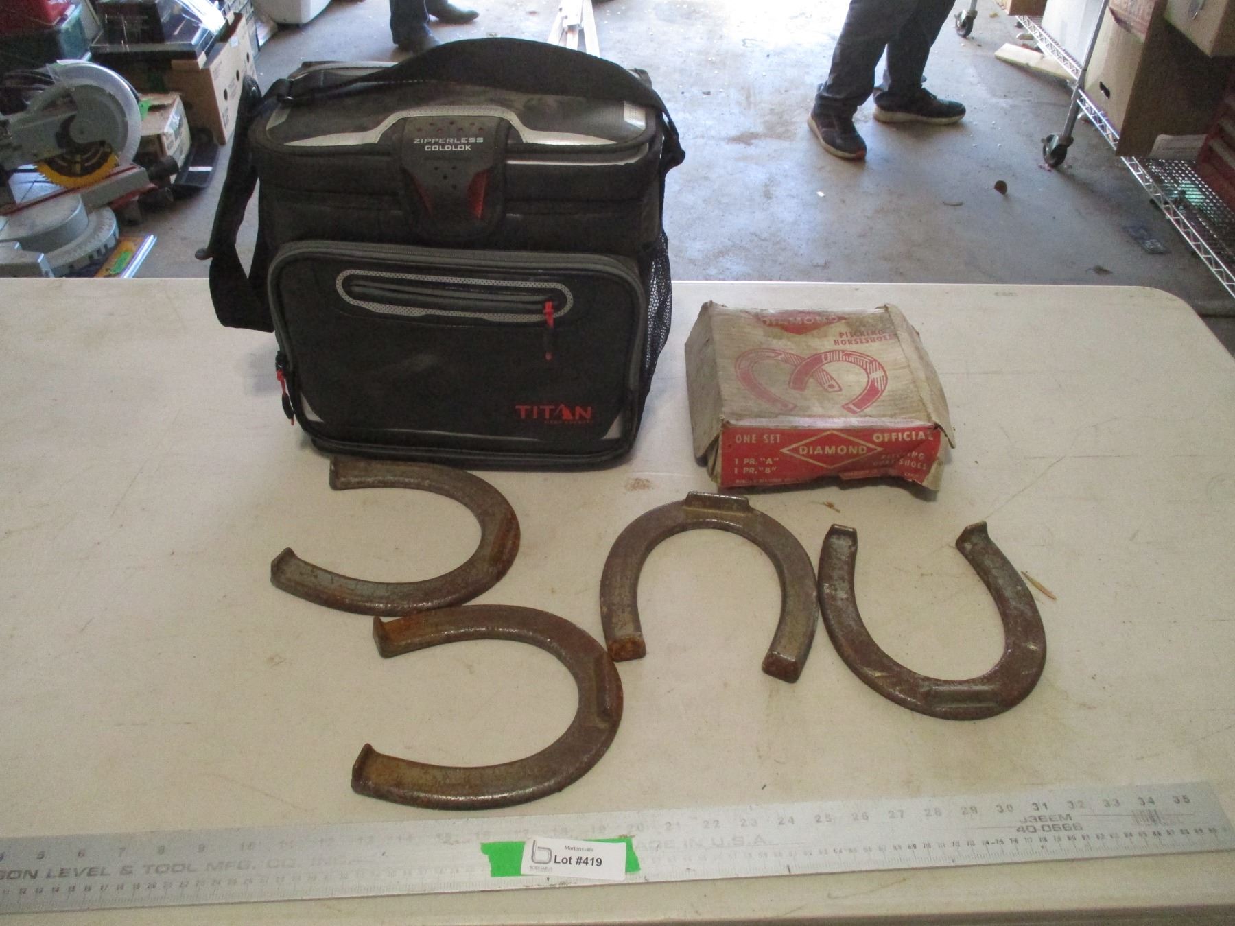 (4) Diamond Pitching Horseshoes & Titan Deepfreeze Soft Cooler Bag