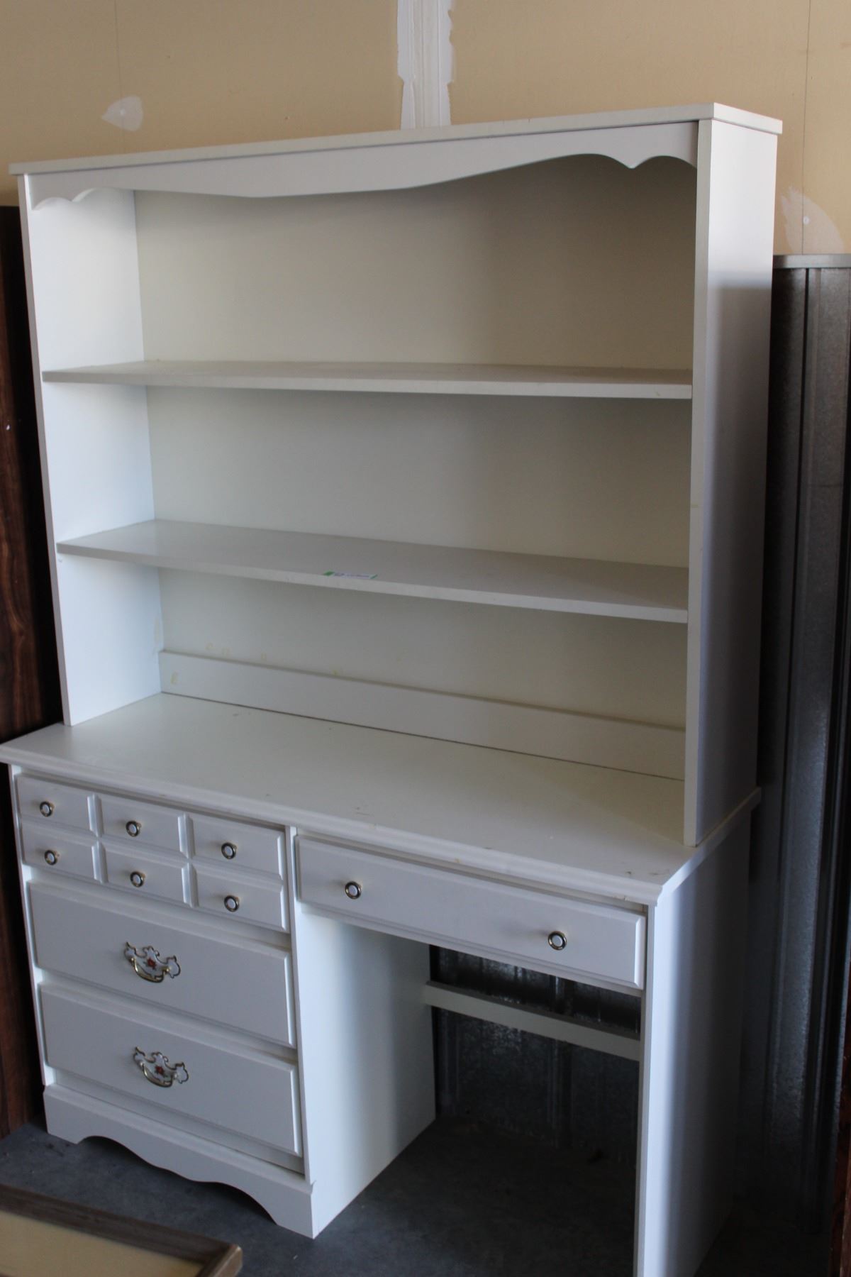** 4-Drawer White Cabinet with (2) Bookshelves, 46" x 10" x 68" Tall