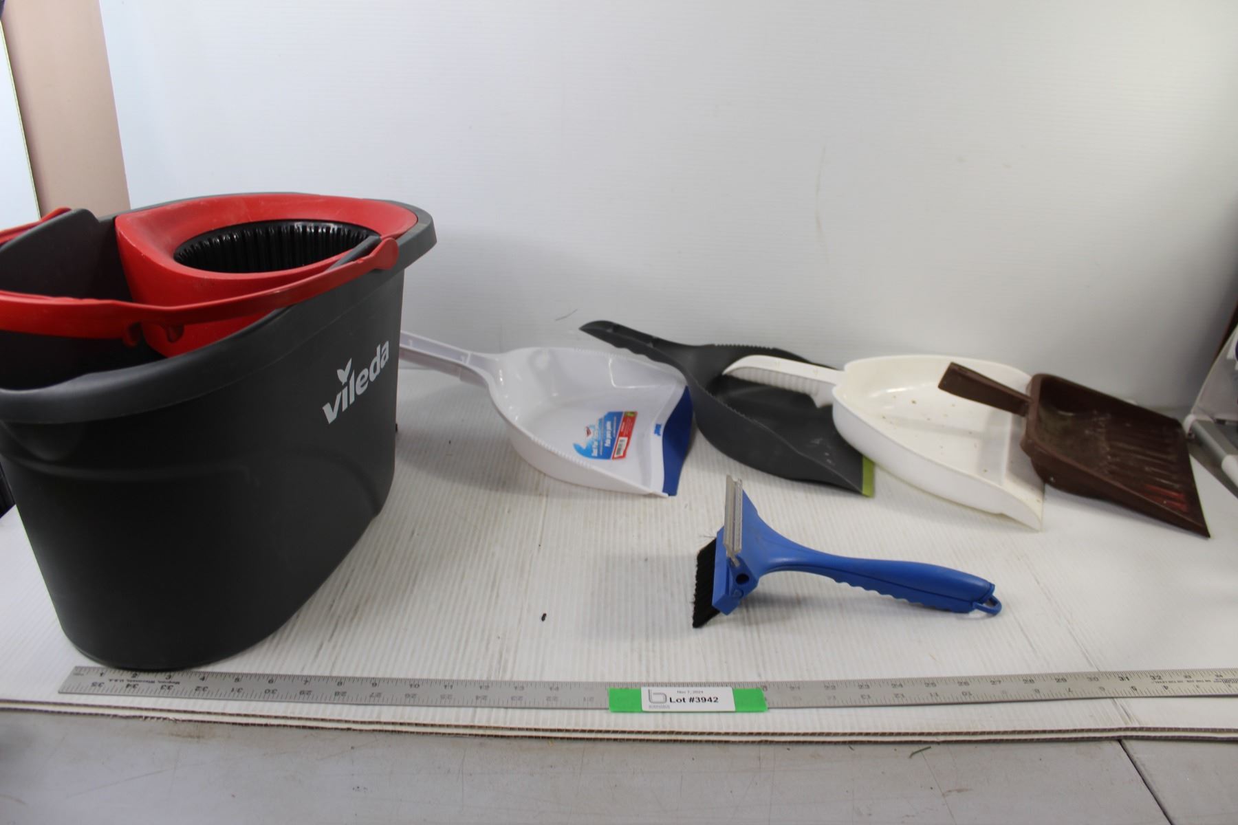 (4) Dustpans, Mop Bucket, Cleaning Brush