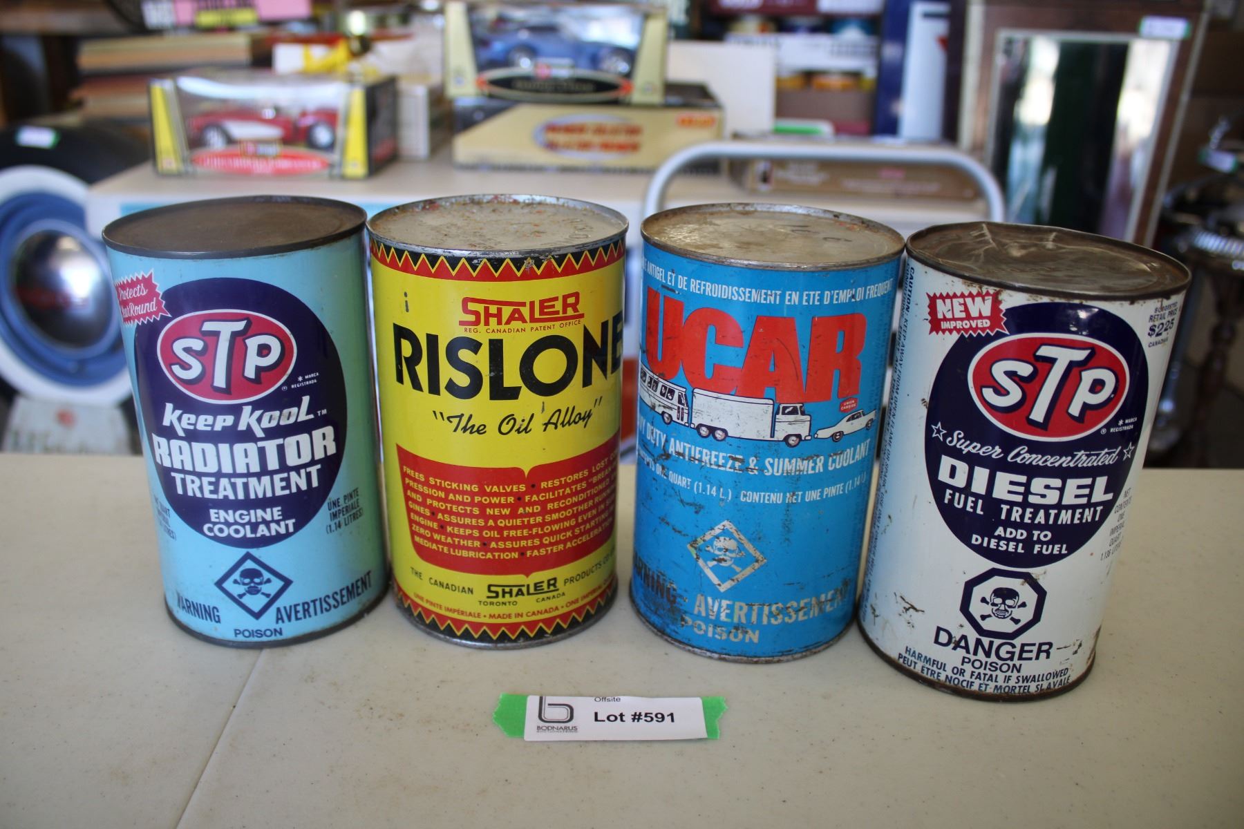 (4) FULL oil cans - STP Radiator, Shaler Rislone, Ucar Antifreeze, STP Diesel Treatment