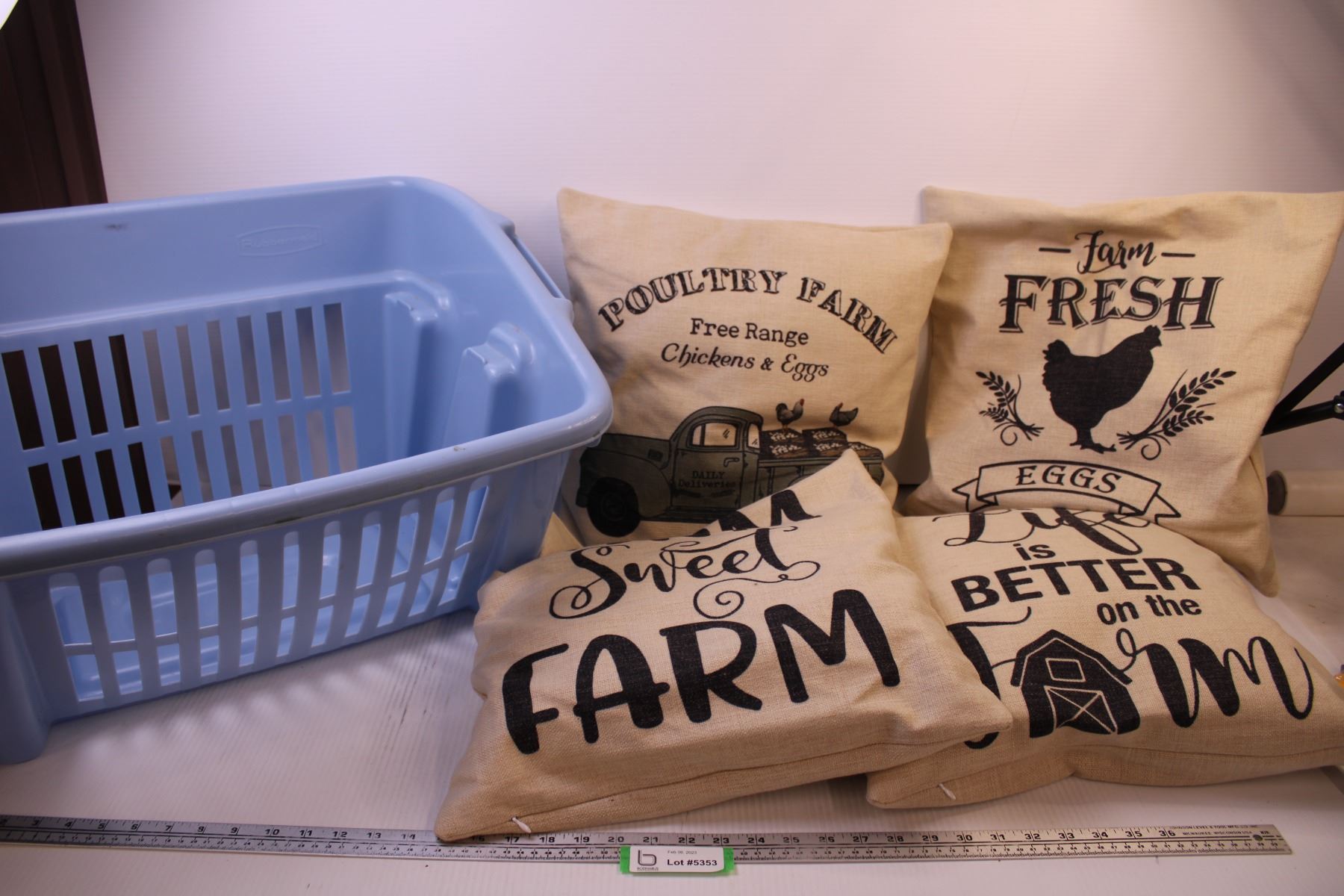 (4) Farm Themed Decor Pillows + Laundry Basket